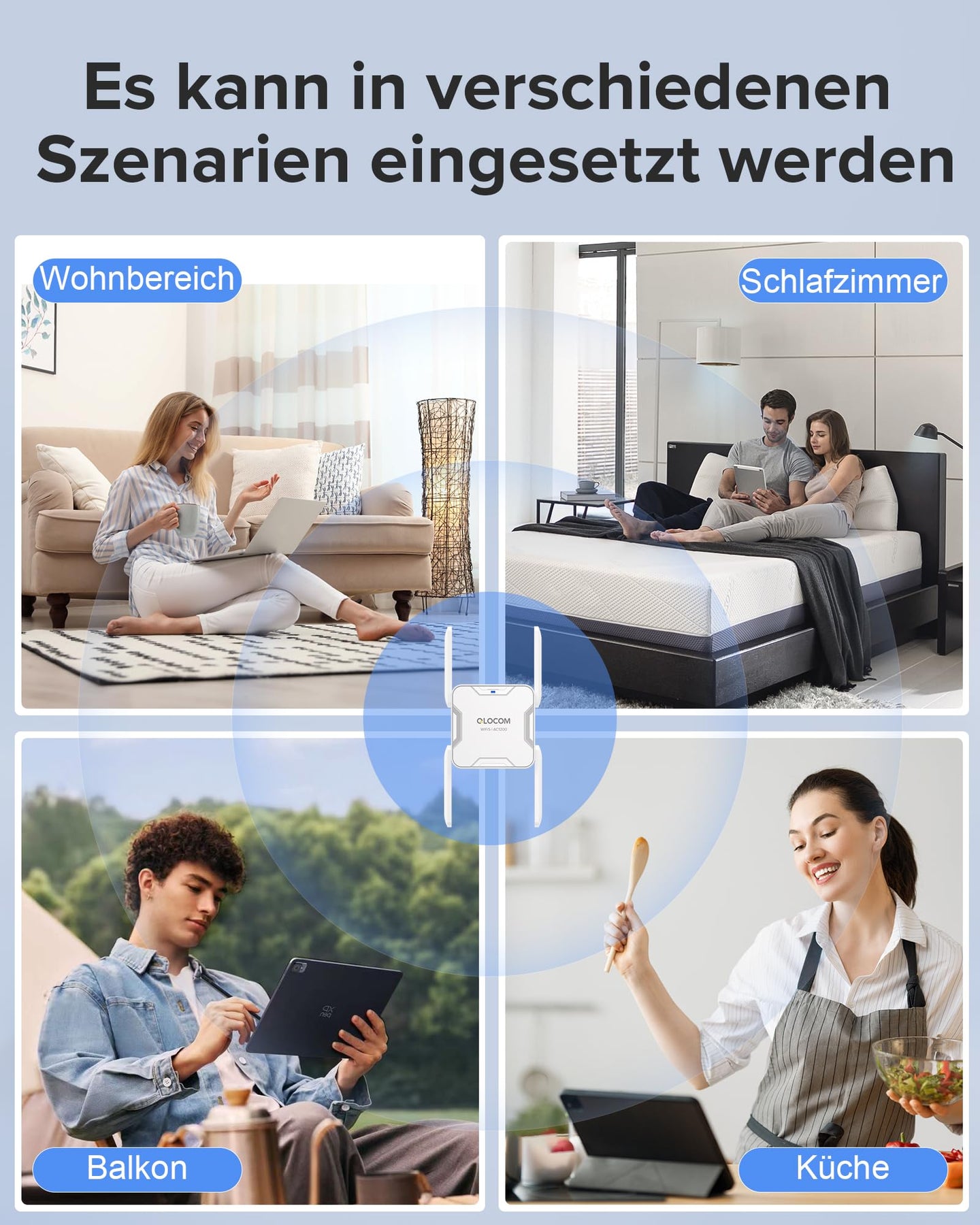 • 🏠【Stärkeres Signal im ganzen Haus】Wi-Fi Verstärker ist mit 4 externen Antennen ausgestattet und sorgt für eine robuste Konnektivität im ganzen Haus. Von Schlafzimmern, Badezimmern, Garagen, Kellern bis hin zu Gärten, so dass Sie drahtlose Freiheit genießen können.