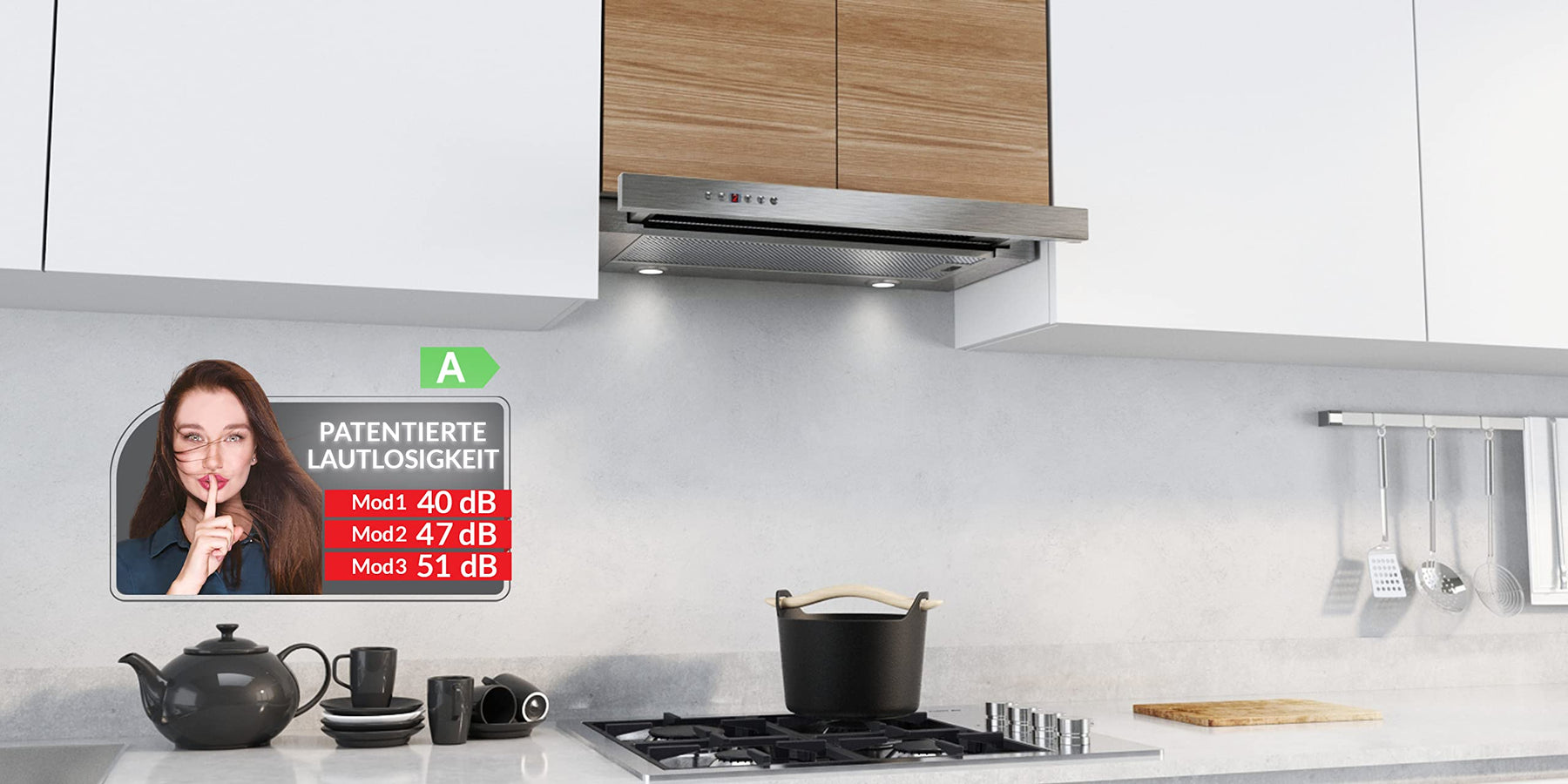 • A KLASSE – ENERGIEEFFIZIENT: KÜGERR Dunstabzugshauben bieten eine bis zu 50 % höhere Energieeffizienz als andere Standardprodukte.
