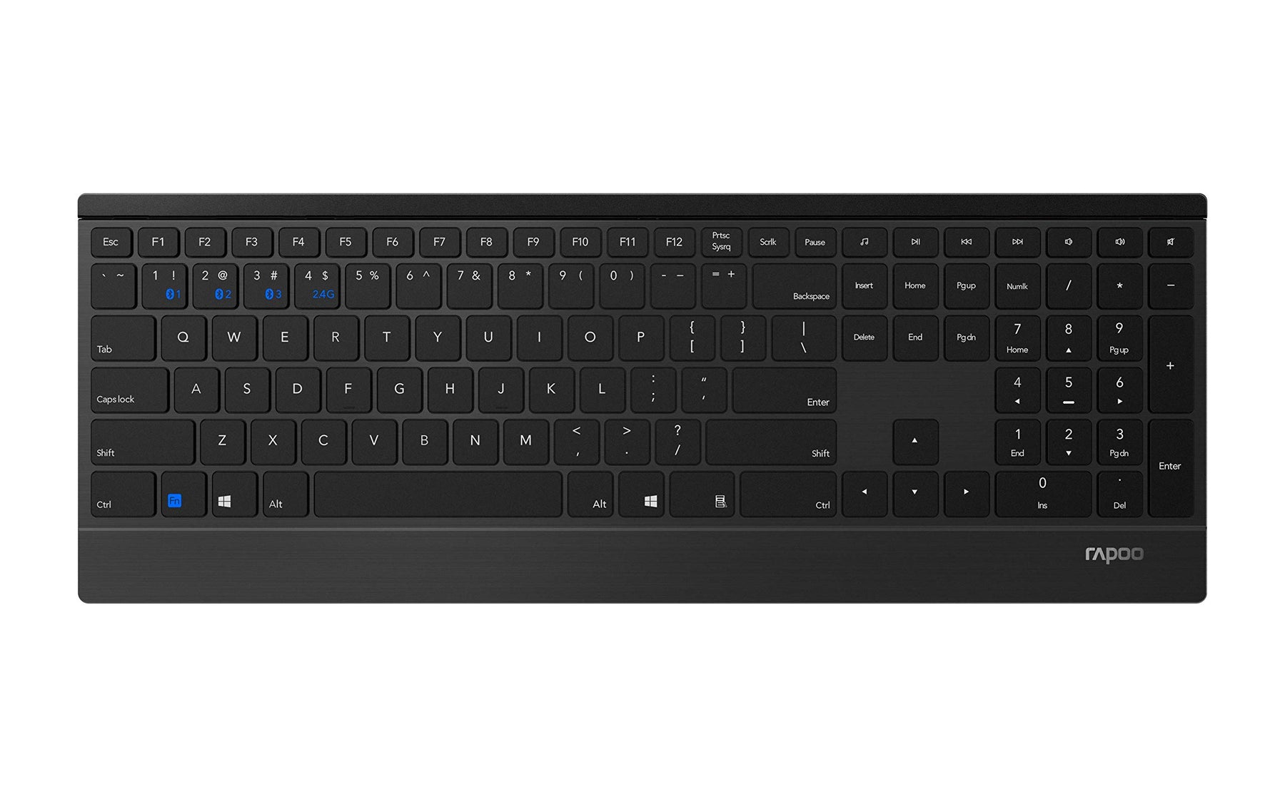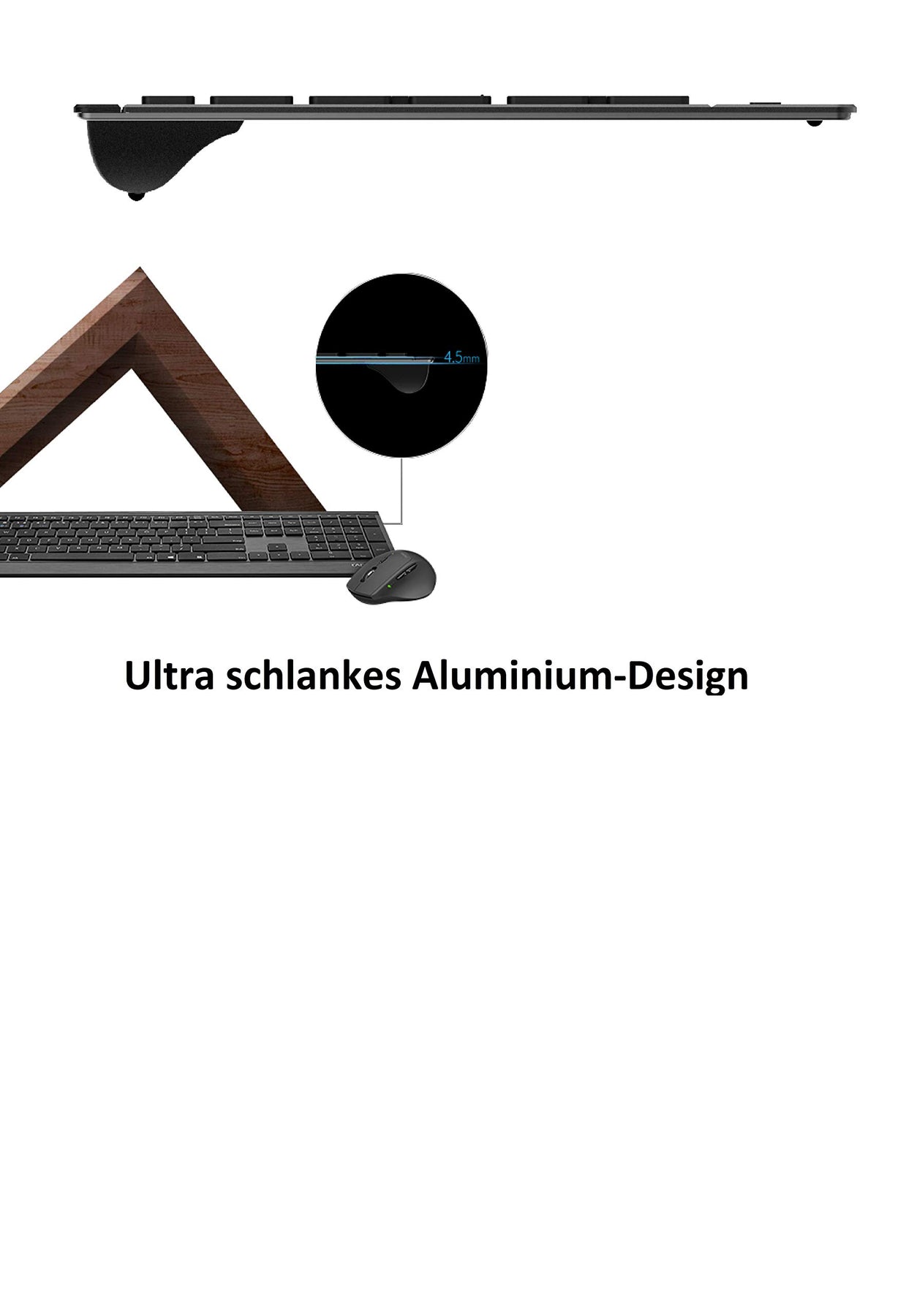 Einzelheiten: Rapoo 9500M kabelloses Tastatur-Maus Set Wireless Deskset 1600 DPI Sensor 12 Monate Batterielaufzeit flaches Aluminium Design DE-Layout QWERTZ PC & Mac - schwarz