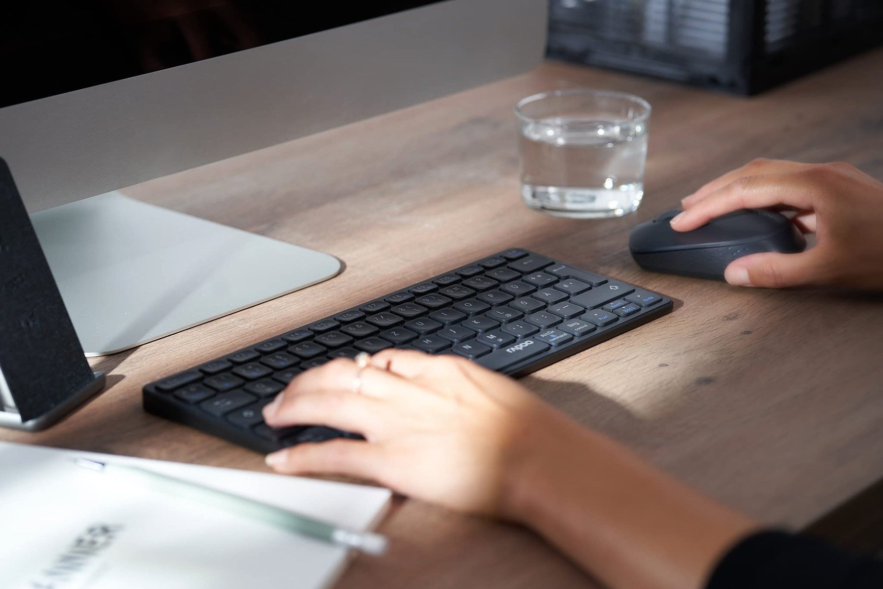 Rapoo wireless Tastatur-Maus-Set ideal für Arbeiten im Home Office oder im Büro, für kleine & große Hände sowie Windows & Mac, präzise leise Tasten und deutsches Layout