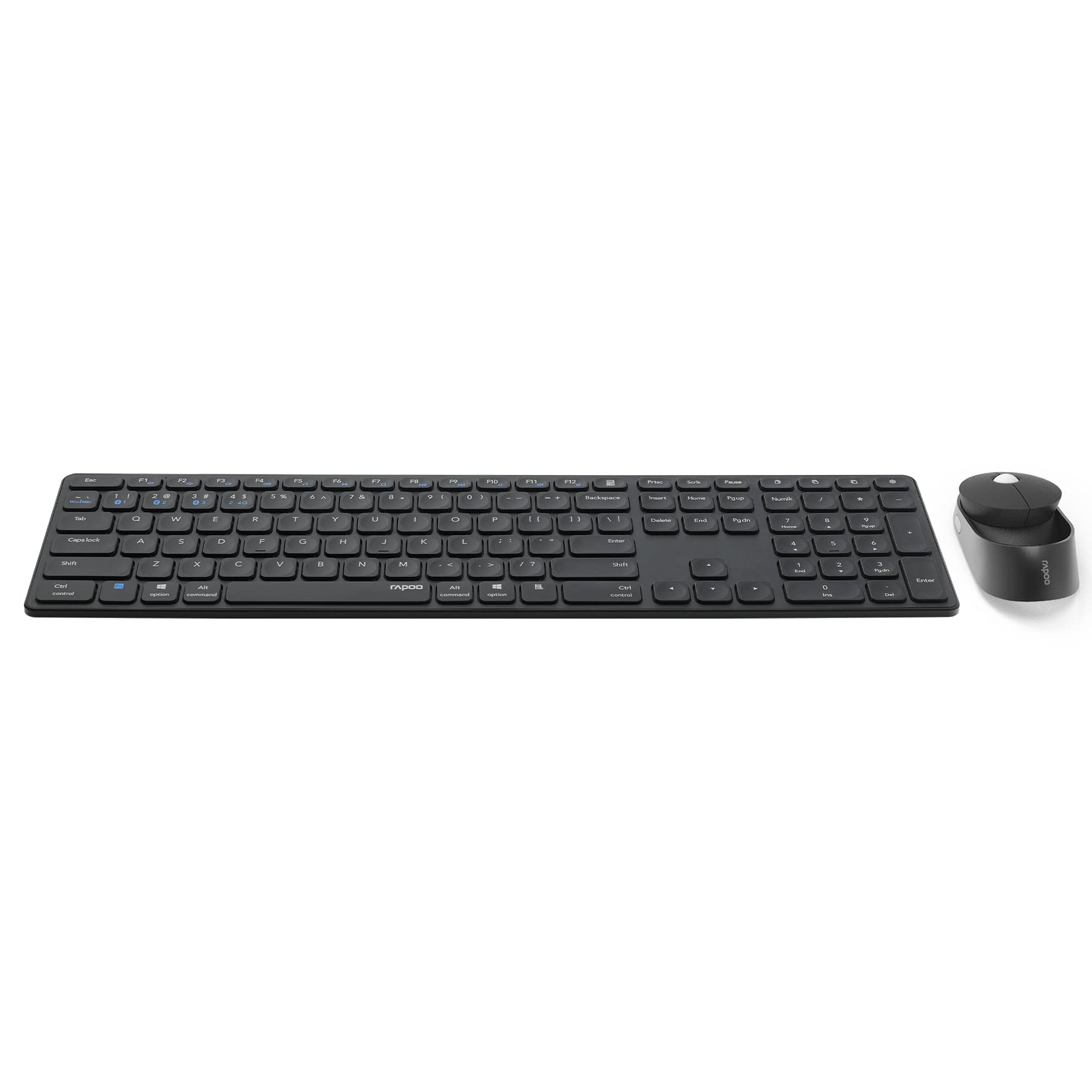 Einzelheiten: Rapoo wireless Tastatur-Maus-Set ideal für Arbeiten im Home Office oder im Büro, für kleine & große Hände sowie Windows & Mac, präzise leise Tasten und deutsches Layout Technische Details Farbe: Grau Farbton: Dunkelgrau Produktbereich: PC & Notebook Tastaturlayout: QWERTZ (deutsch) Anschluss: USB-Typ-A-Stecker Verbindung: 2.4 GHz RF/Bluetooth Bluetooth-Version: 3.0/5.0 DPI: 1600 Kompatible Betriebssysteme: MAC OS X 10.4 oder höher/Windows 11/10/8/7 Reichweite: 10 m Ausführung: Ergonomisch/Ultra Slim Tastatur Maus Tastenanzahl: 7 Tasten inklusive Scroll-Rad Sensorik: Optisch Tastatur Tastenanzahl: 110 Tastenmechanik: Scissormechanik Abmessung Maus B x H x T: 6,9x4,3x10,3 cm Abmessung Tastatur B x H x T: 42x1,3x11,5 cm Maus-Gewicht: 74 g Tastatur-Gewicht: 647 g Anzahl Batterien: 2 Batterietyp: AA Mignon Set-Inhalt in Stück: 2 Distributionsmodell: Logistik-DL/Vertrieb Systemvoraussetzungen - Betriebssystem: Windows XP/Vista/7/8/10/11, Mac OS X 10.4 oder höher
