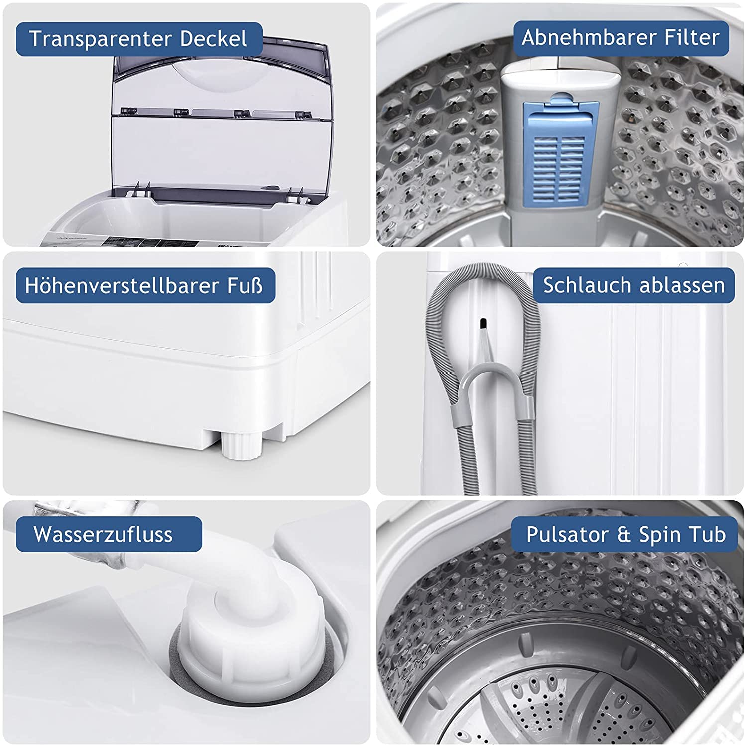 - ★ 4,5 kg Fassungsvermögen ★ Mit einem Fassungsvermögen von 4,5 kg kann die Waschmaschine große Menge Wäsche auf einmal für den täglichen Bedarf waschen. Außerdem ist die Waschmaschine mit Aluminiumdrahtmotor ausgestattet, der für starke Leistung sorgt und die Wäsche vollständig reinigt.