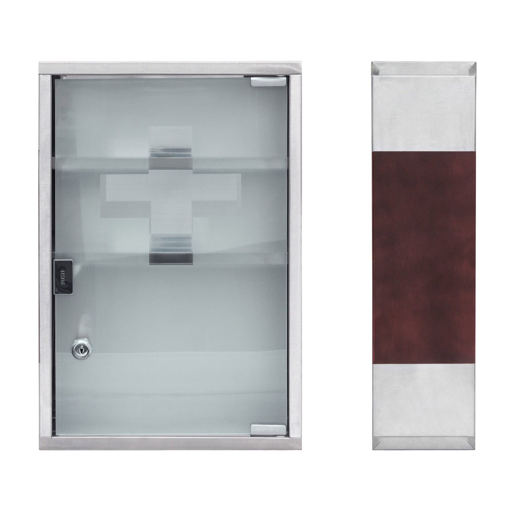 • Arzneischrank aus Edelstahl, Holz & Glas