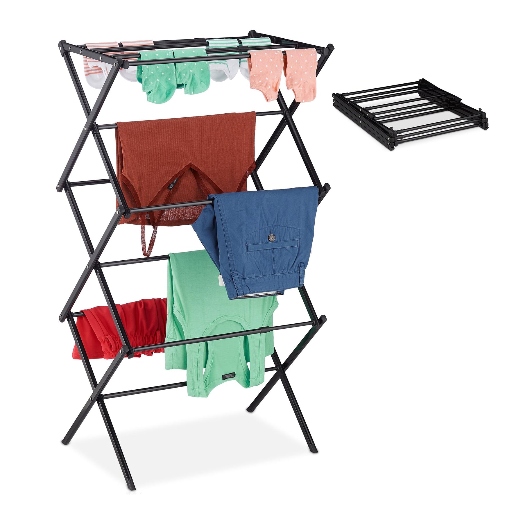 Relaxdays Wäscheständer klappbar, 11 Stangen auf 6 Ebenen, HBT: 105x73x37 cm, ausziehbarer Wäscheturm, Metall, schwarz