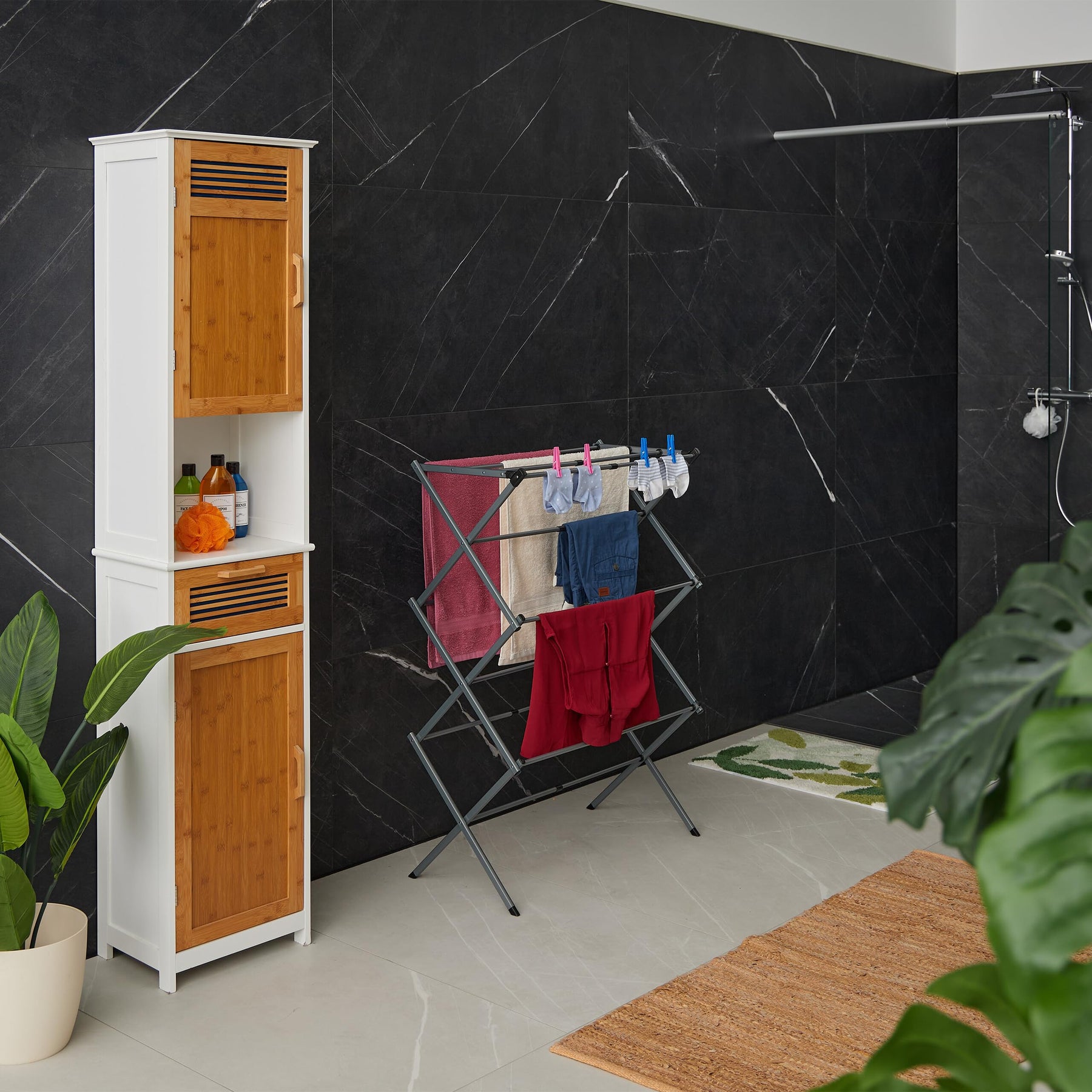 • Klappbar: Den Turmwäschetrockner bei Nichtbenutzung einfach flach zusammenfalten und verstauen