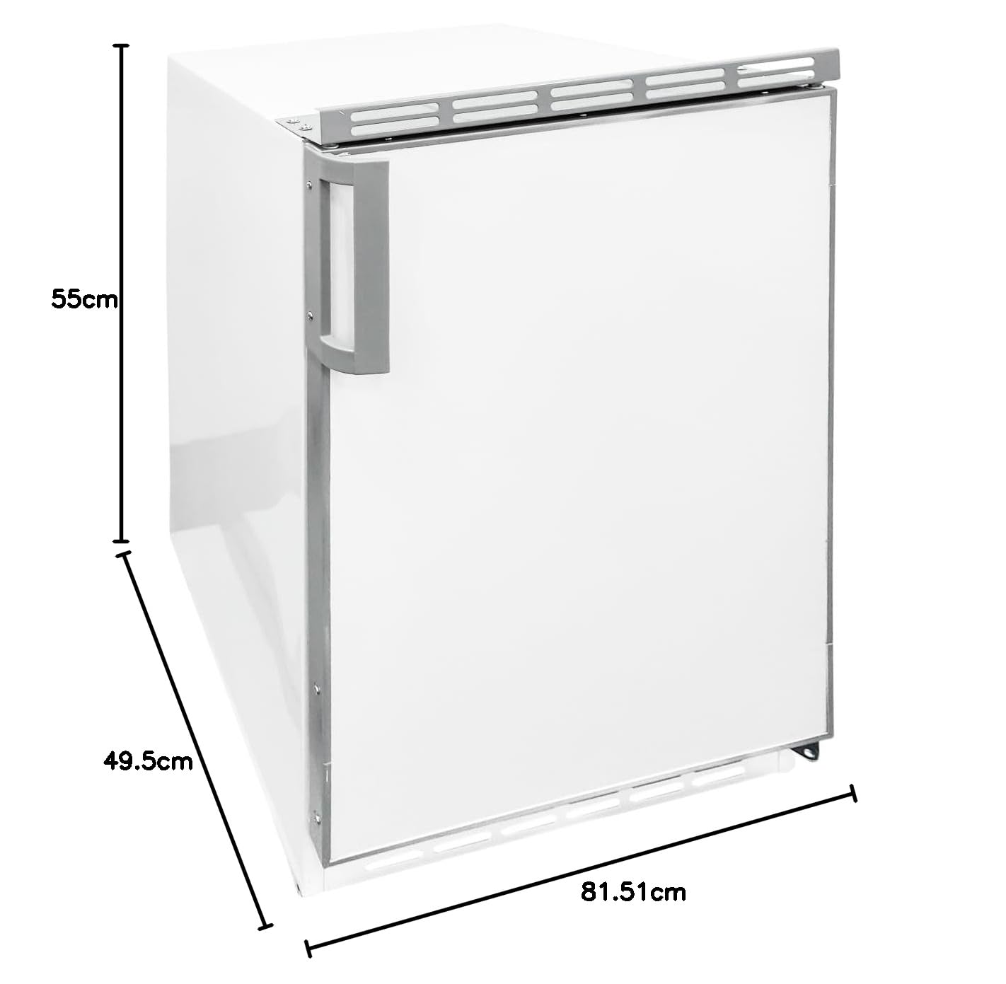 - TECHNISCHE DATEN: Der unterbaufähige Kühlschrank mit Gefrierfach weist die Maße(H) 81,5 x (B) 49,5 x (T) 55 cm und ein Gewicht von 23,5 kg auf – ausgezeichnet mit der Energieeffizienzklasse E