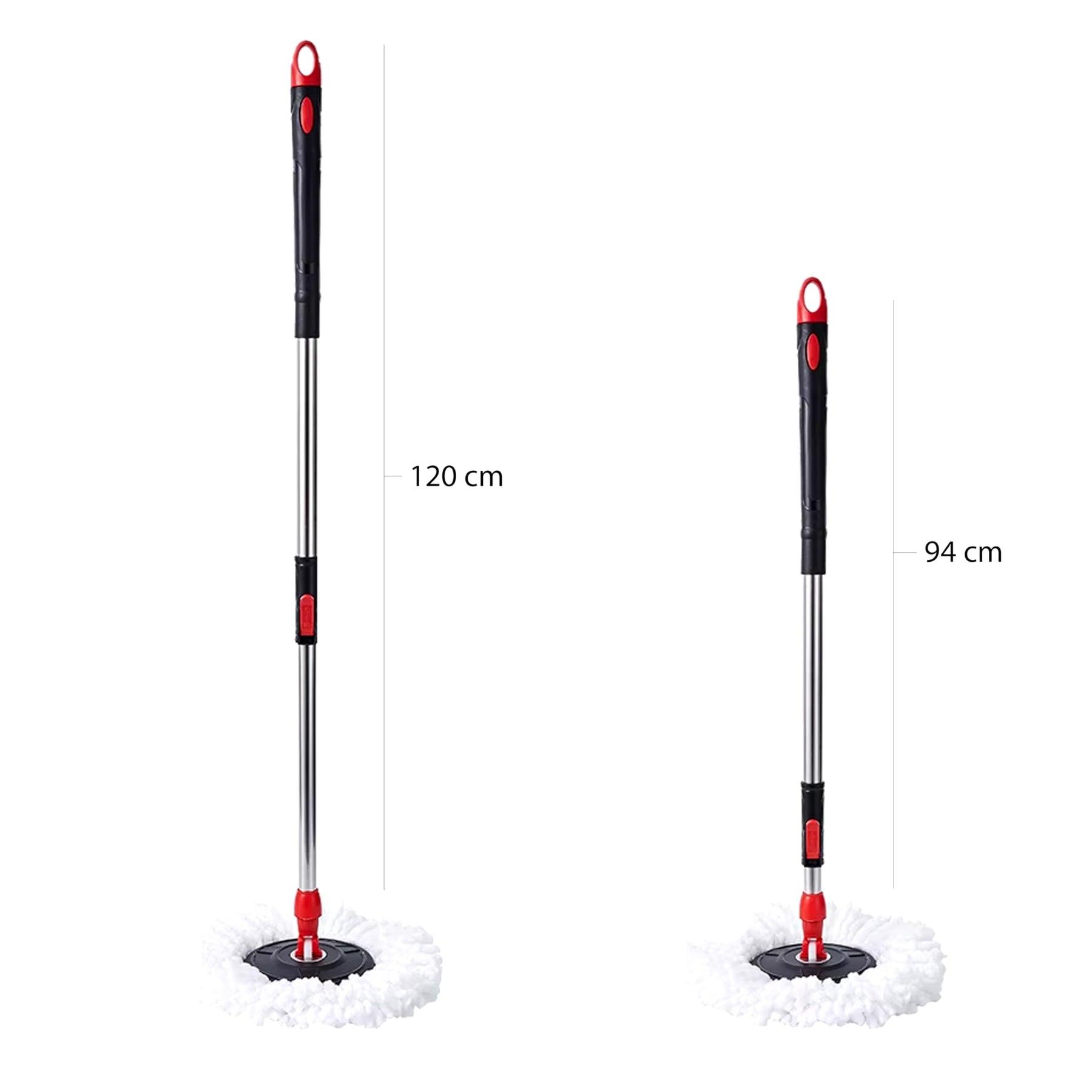 Verstellbarer Teleskopstiel - Der Mopp verfügt über einen Teleskopstiel, der von 94 bis 120 cm Länge verstellbar ist, so dass Sie ihn an Ihre individuellen Bedürfnisse anpassen können. Dank dieser Funktion ermöglicht der Mopp eine bequeme Reinigung schwer zugänglicher Bereiche, wie z. B. unter Möbeln oder in Ecken, was zu einem komfortablen und ergonomischen Arbeiten führt.