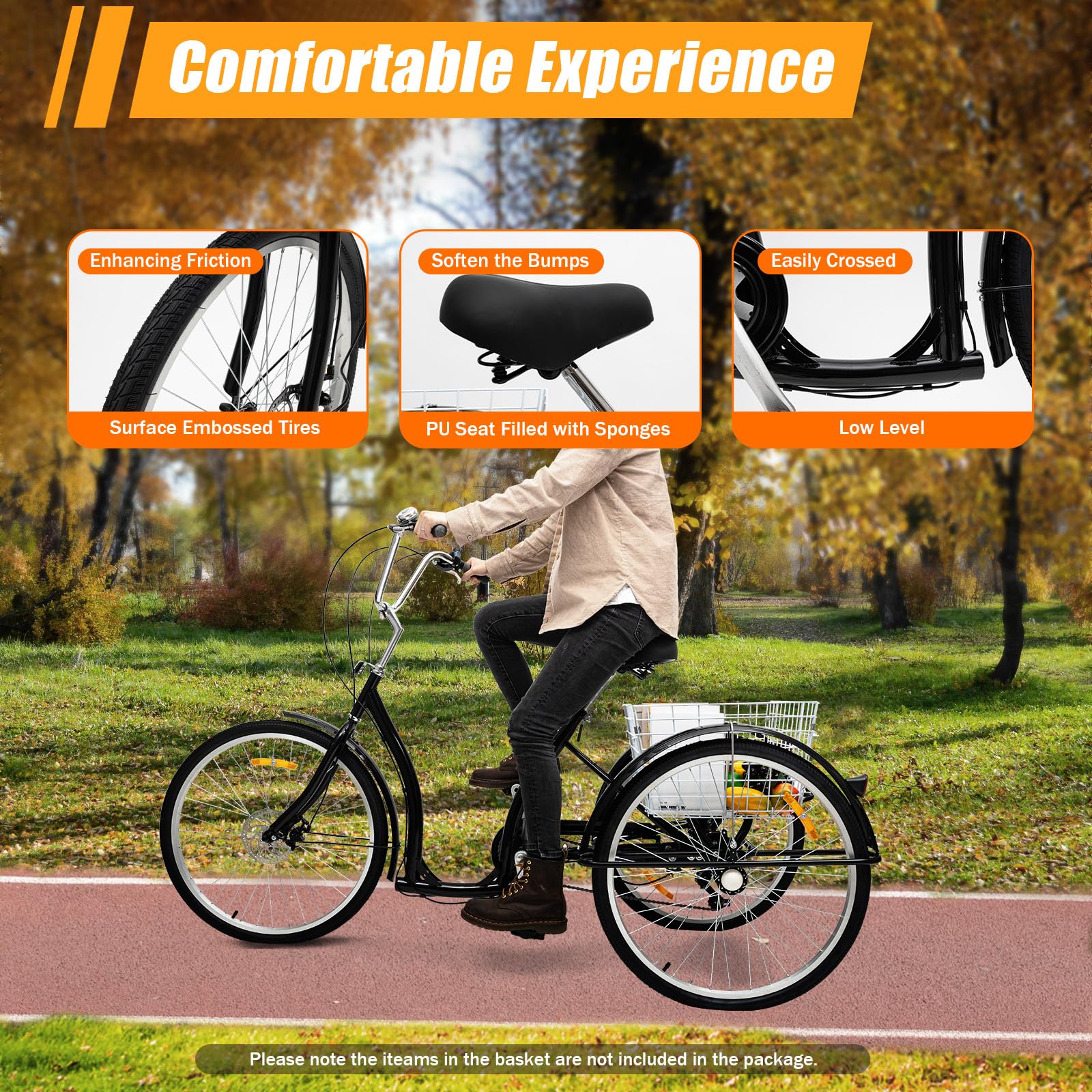 Einzelheiten: Dieses Traditionelle 26-Zoll-3-Rad-dreirad Für Erwachsene Mit 6-Gang-schaltung Und Korb Wurde Speziell Für Ältere Menschen (165-225 Cm) Entwickelt. Praktisch Für Ältere Menschen Zum Ausgehen, Kann Auch Bewegung, Umwelt Und Sicherheit Leisten. Einkaufskörbe Sind Einfach Zu Handhaben Tragen Sie Ihr Gemüse Oder Obst.ob Sie Für Sich Selbst Kaufen Oder Als Geschenk Für Freunde Oder Eltern Kaufen, Dies Ist Eine Gute Wahl, Um Es Zu Kaufen.