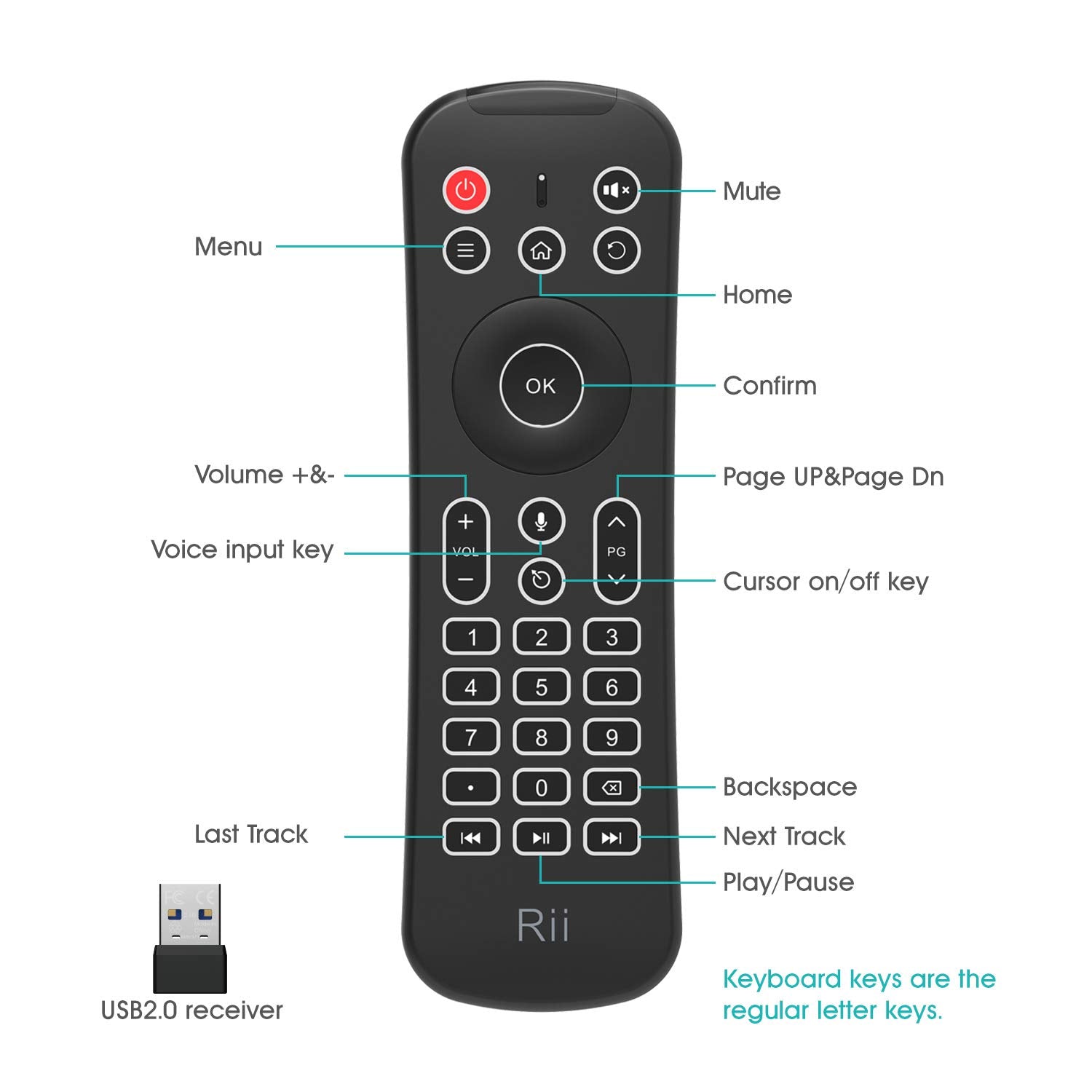 5-in-1-Funktastatur: Air Remote Mouse+2,4GHz Mini Wireless Keyboard+Microphone Sprachsteuerung+Android Fernbedienung(6-Achsen-Sensor)+lernende Infrarotfernbedienung. Plug-and-Play mit der aktuell besten Betriebserfahrung in der 2,4-GHz-Verkabelungstechnologie. Praktisch und praktisch für Meetings und Familien. Mit der beleuchteten Taste können Sie es nachts verwenden.