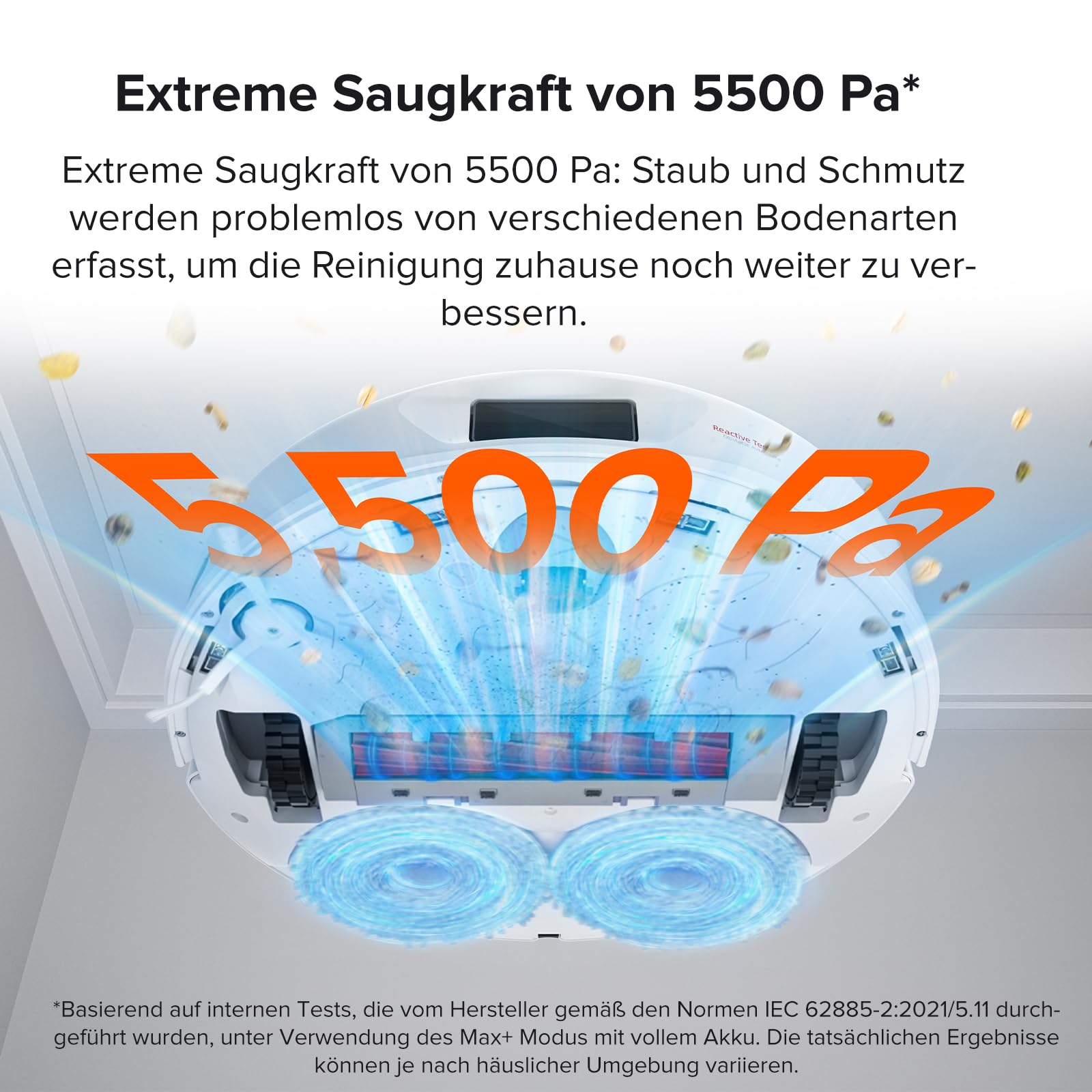 roborock Qrevo Saugroboter mit Wischfunktion, 5500Pa Saugkraft, 3D-Kartierung, Doppeldrehmopps Wischroboter-Weiß (Generalüberholt)