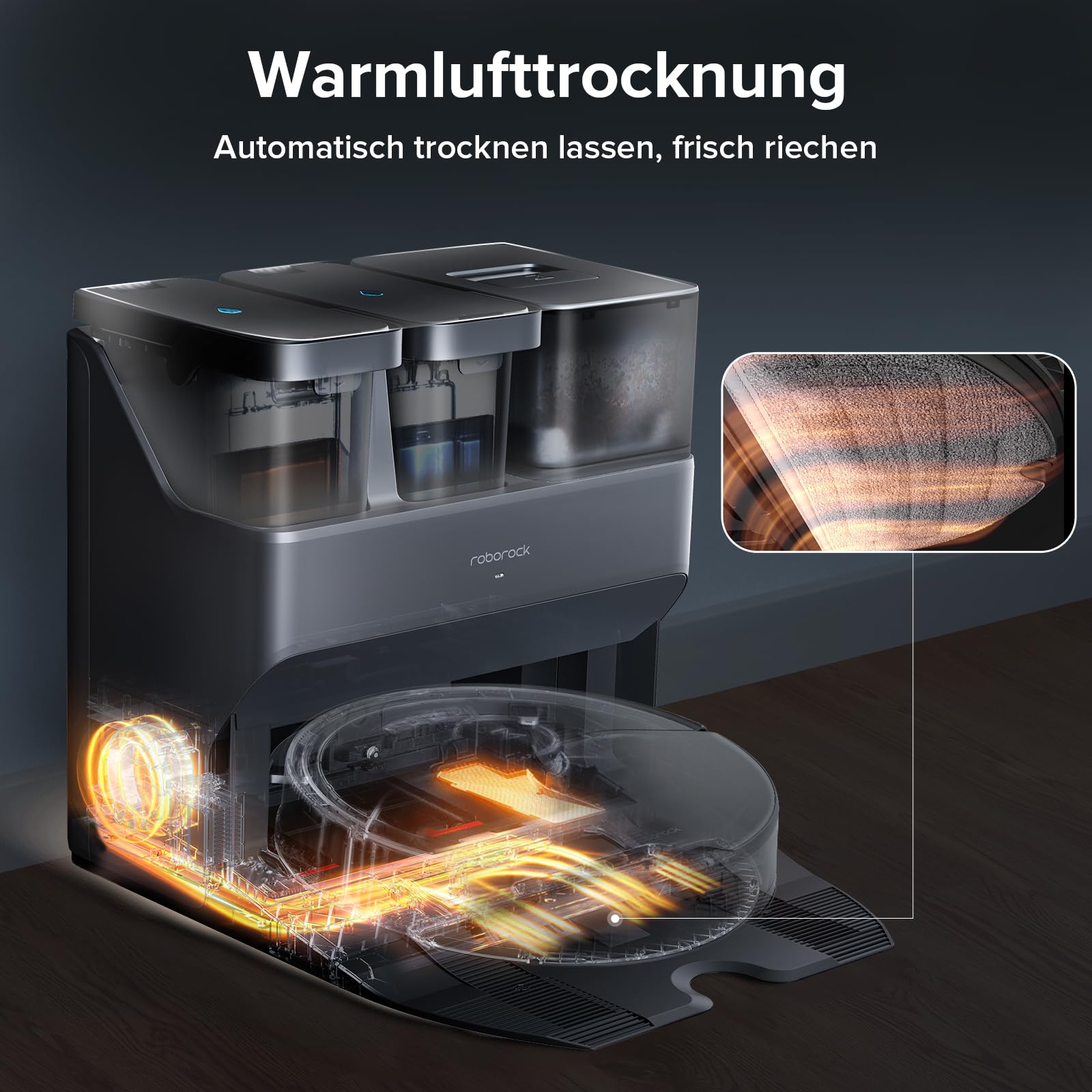 - 【Freihändige Reinigungstechnologie】 Die Absaugstation kann sich selbst entleeren, selbst waschen, selbst trocknen, sich selbst reinigen und selbst befüllen. Die neue Trocknungsfunktion trocknet den Mopp gleichzeitig mit der Spüle. Die Reinigung des Saugroboters mit absaugstation roborock S7 Max Ultra erfolgt vollautomatisch, spart Zeit und befreit Ihre Hände.