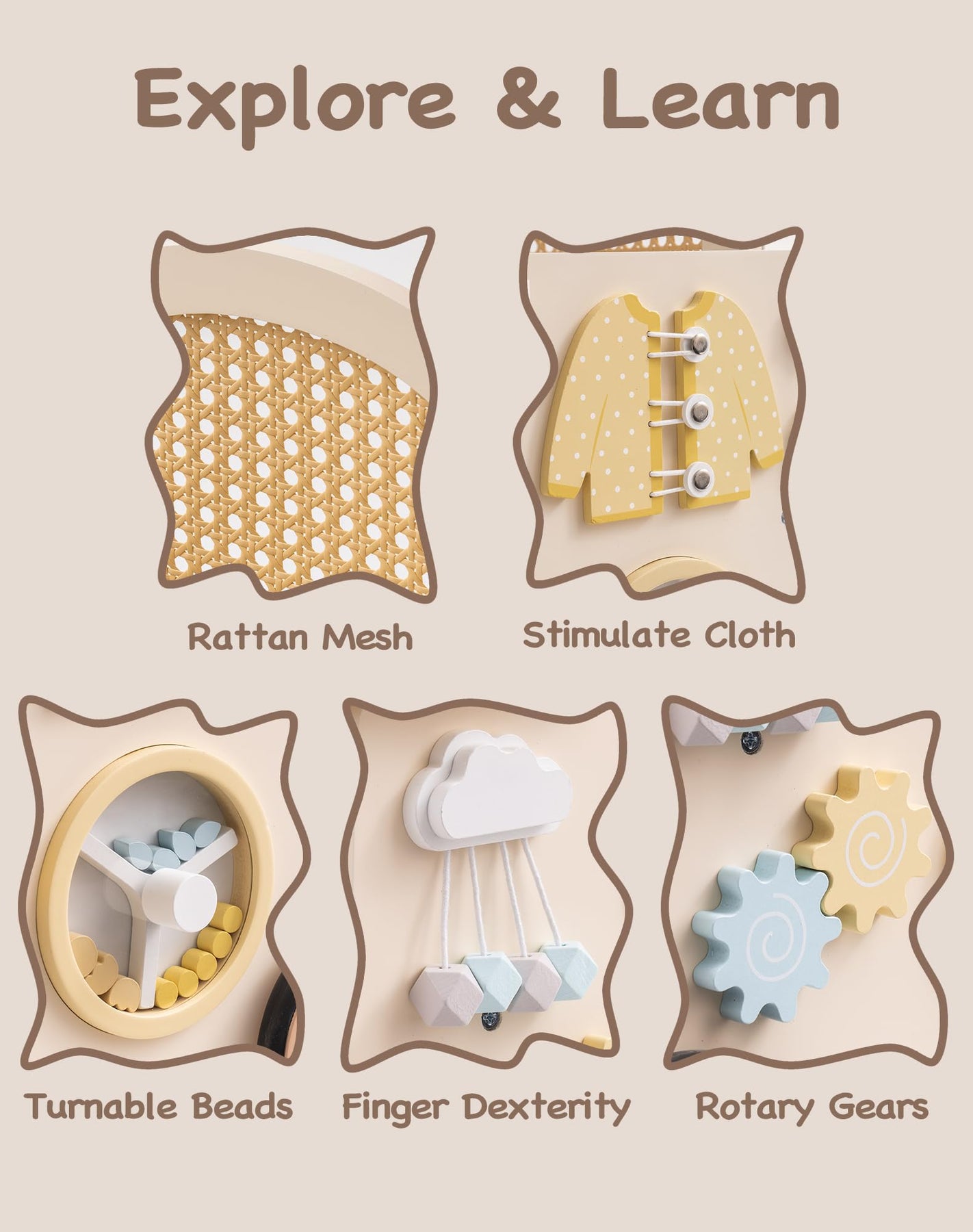 - 🧚Interaktives Aktivitätszentrum: Beschäftigen Sie Ihren Kleinen mit dem interaktiven Aktivitätszentrum. Eine Seite verfügt über Reißverschlüsse, kleine Knöpfe und eine simulierte Waschmaschine mit rollenden Perlen, während die andere Seite eine Babyflasche und einen Teller enthält. Diese Aktivitäten helfen bei der Entwicklung der Hand-Augen-Koordination und der Feinmotorik, perfekt für Lauflernhilfen für Jungen und Mädchen ab 10 Monaten.
