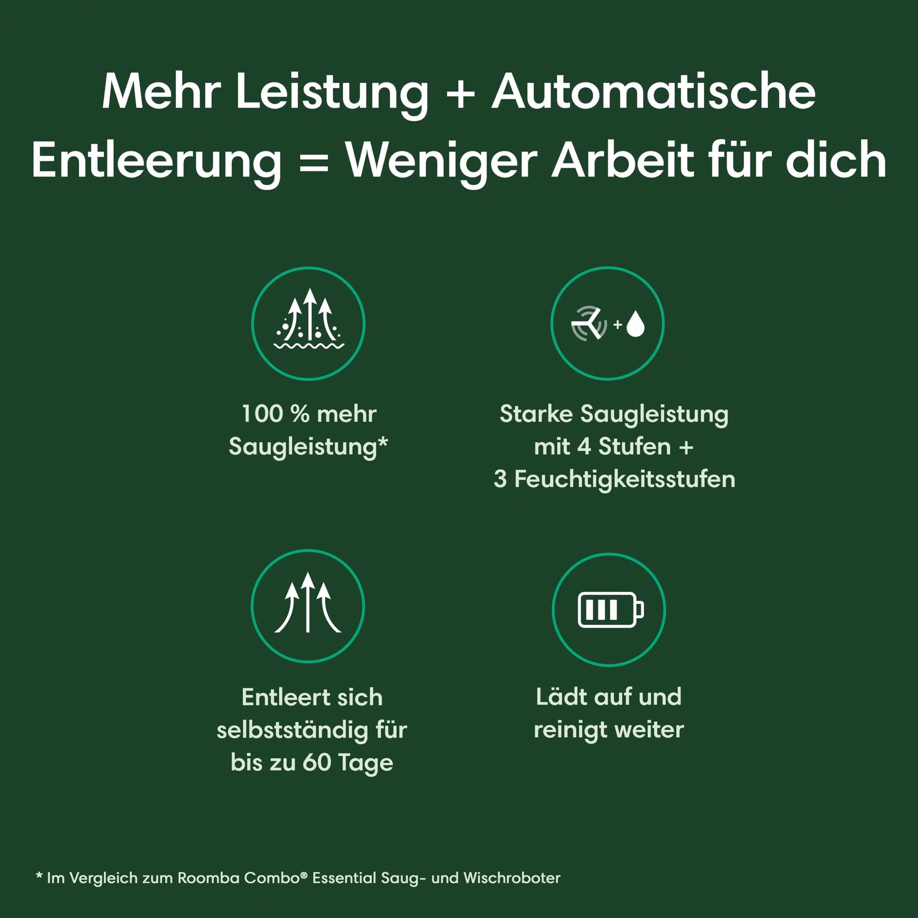 - LÄDT SICH EIGENSTÄNDIG AUF: Der Combo Essential reinigt bis zu 120 Minuten mit einer einzigen Akkuladung, und wenn sein Akku leer ist, kehrt der Roboter automatisch in seine Ladestation zurück, um sich aufzuladen.