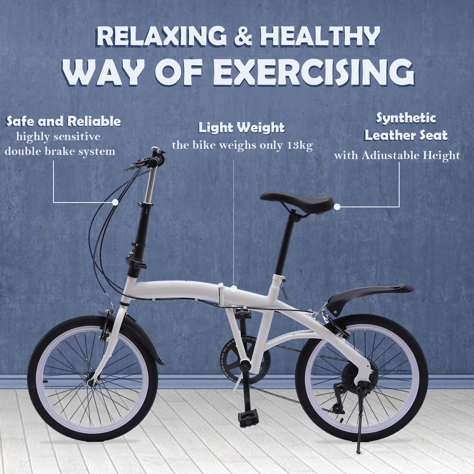 - 【Synthetischer Ledersitz】Der Sitz dieses Folding Bike ist aus synthetischem Leder hergestellt, es ist bequem. Es kann beim Fahren gleichmäßig belastet werden, so dass es Ihren Hintern während langer Fahrten nicht schmerzen wird.