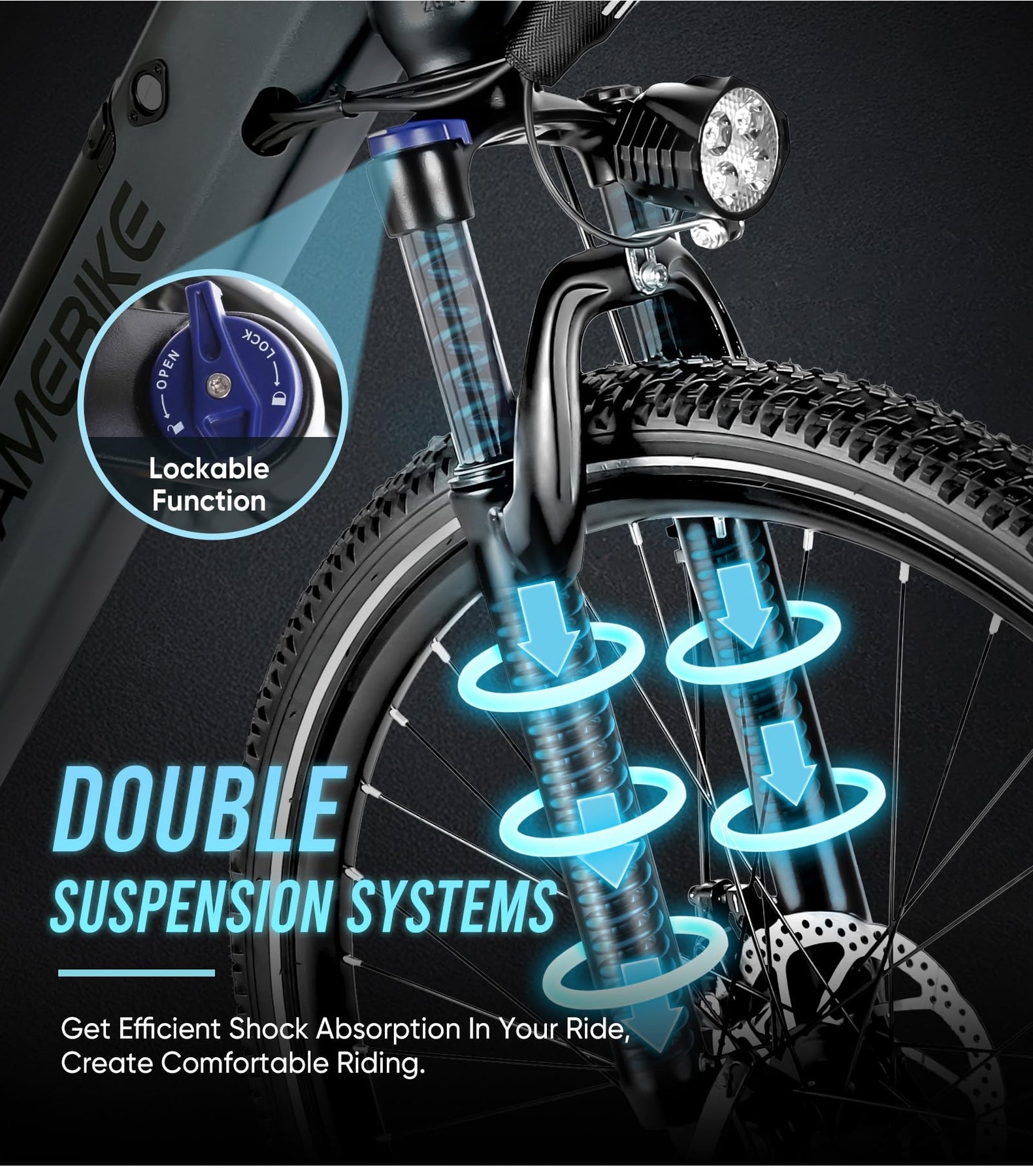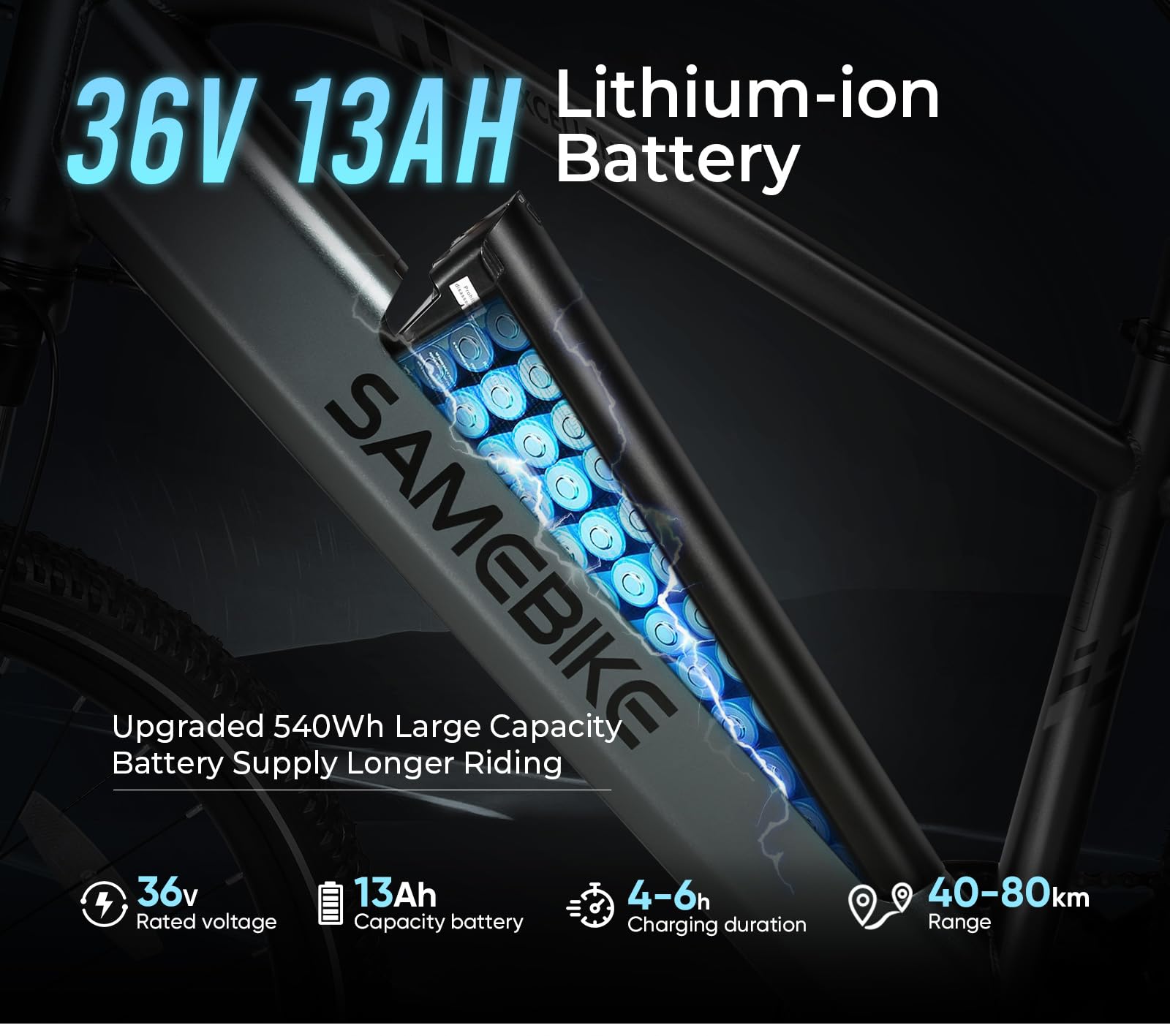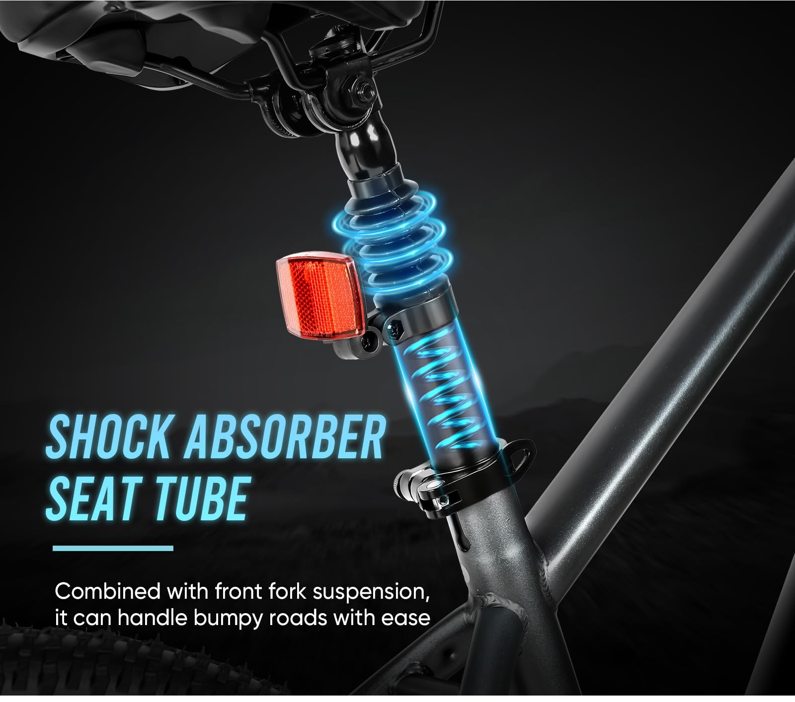 - 250W POWER MOTOR: Samebike 250W Motor mit Hinterradantrieb liefert ein starkes Drehmoment mit einer einzigartigen Funktion, um die Leistung auf Ihrem täglichen Pendeln und Bergfahren zu erhöhen, die dem Fahrer helfen, 15,5 mph mit Leichtigkeit zu erreichen. Die hochfeste, stoßdämpfende Vorderradgabel mit mechanischer Verriegelung ermöglicht Ihnen eine ungehinderte Fahrt auf unebenen Straßen.
