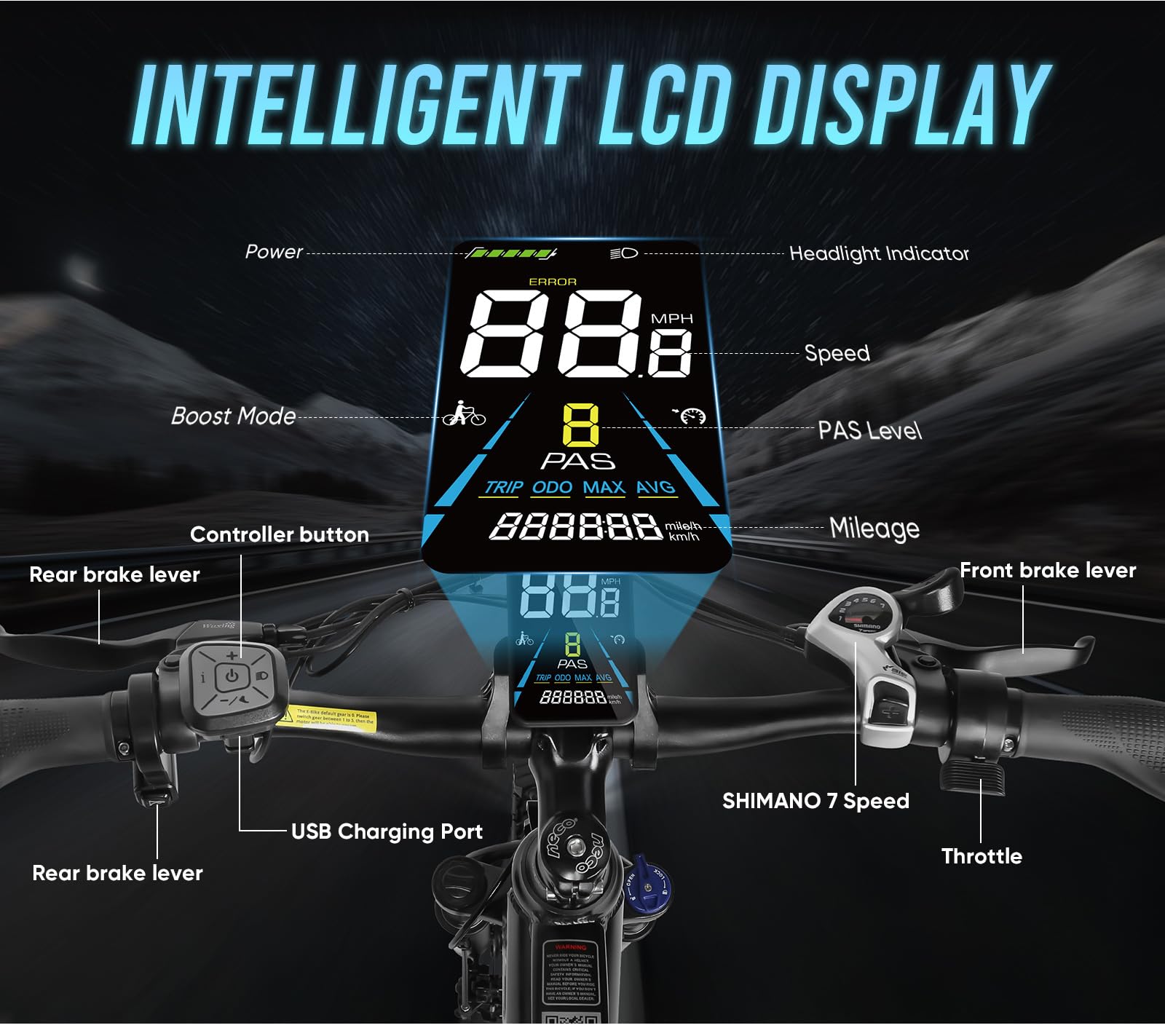 - 3 BETRIEBSMODEN - Reiner Elektromodus & Pedal Assisted Mode & Padel Mode. Wählen Sie das unterstützte Fahrrad, um lange Reisen zu genießen, und auch Übung. LED-Multifunktions-Display zeigen Batteriestand / Geschwindigkeit / Kilometerstand und so weiter.