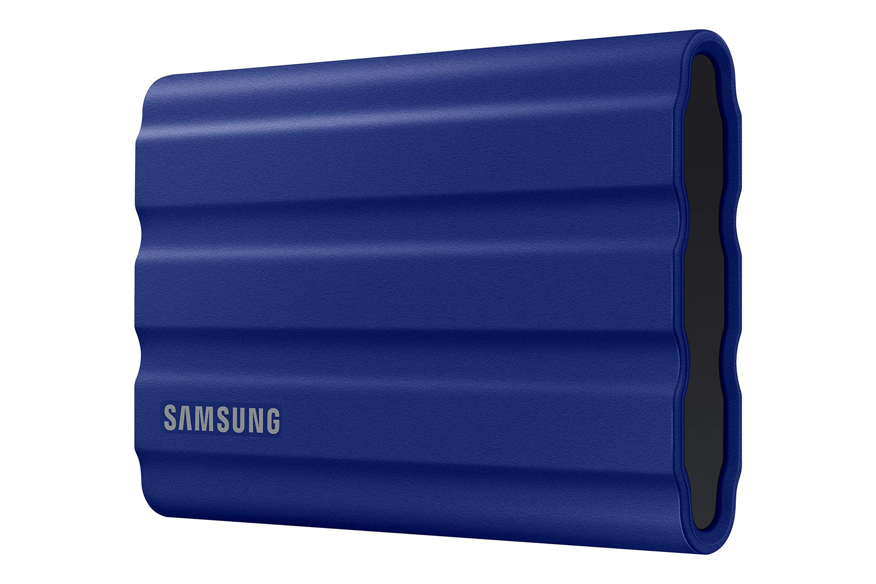 Samsung Portable SSD T7 Shield, 2 TB, USB 3.2 Gen.2, 1.050 MB/s Lesen, 1.000 MB/s Schreiben, Robuste externe Festplatte Outdoor für Mac, PC und Smartphone, Blau, MU-PE2T0R/EU