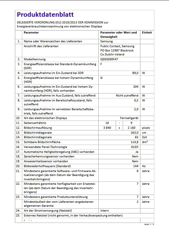 Modellnummer: QE65S90FATXXN
