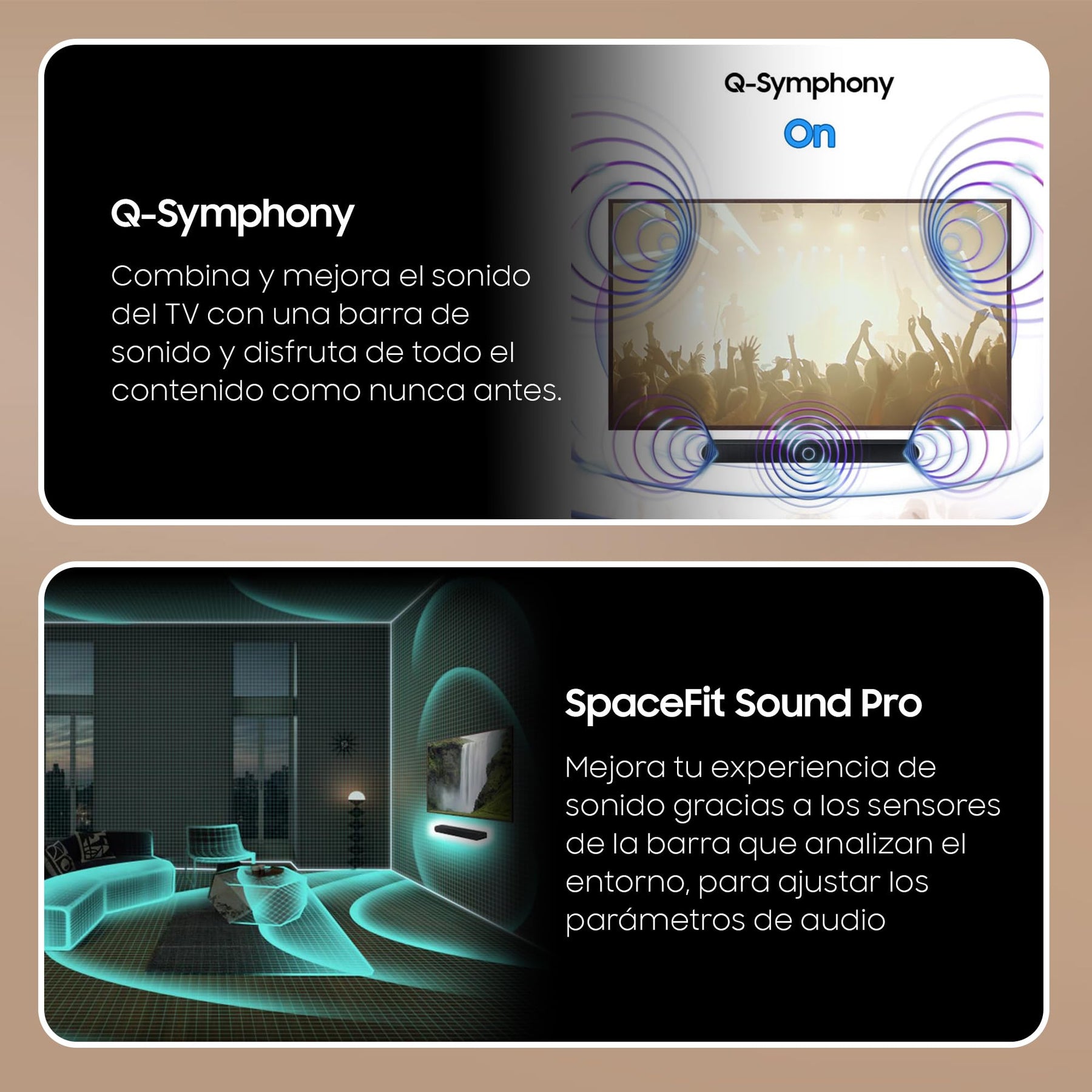 - SpaceFit Sound Pro: Klarer und kalibrierter Klang mit raumoptimiertem Bass, Optimierter Audio für jede Szene, Intelligenter Sprachverstärker, Music Mode Pro um Ihre Soundbar in eine echte Jukebox zu verwandeln, HDMI eARC mit unveränderter Klangqualität