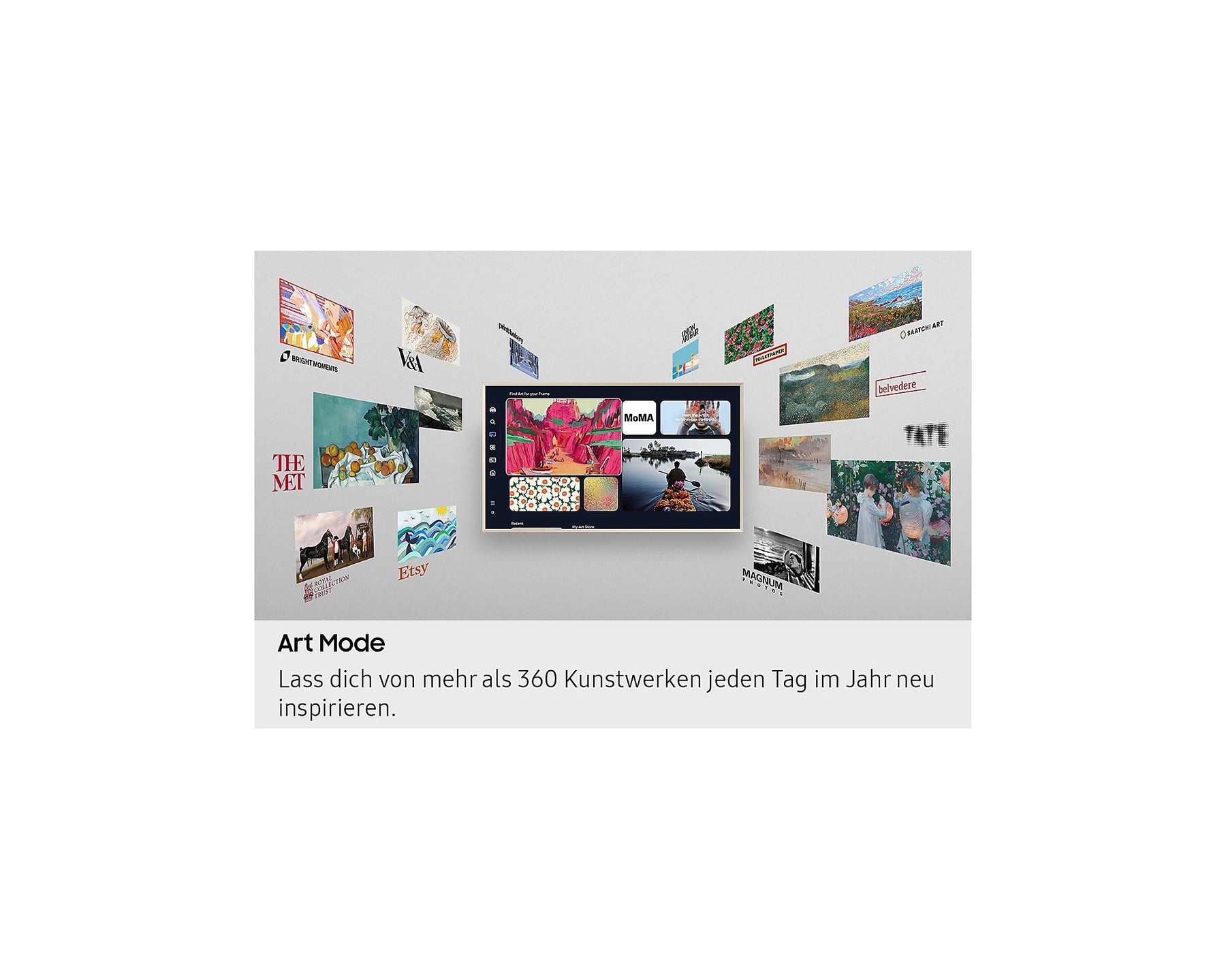 Einzelheiten: Der Samsung The Frame LS03F ist ein beeindruckender 55-Zoll Smart TV, der Technologie und Ästhetik auf einzigartige Weise verbindet. Im ausgeschalteten Zustand verwandelt er sich in ein digitales Kunstwerk und fügt sich nahtlos in Ihr Wohnambiente ein. Das hochwertige Display bietet lebendige Farben und beeindruckende Kontraste für ein außergewöhnliches Seherlebnis. Mit seiner schlanken Bauweise und dem eleganten Rahmendesign ist dieser Fernseher nicht nur ein technisches Gerät, sondern ein stilvolles Einrichtungselement. Die Smart-TV-Funktionen ermöglichen einen einfachen Zugriff auf Streaming-Dienste und andere digitale Inhalte. Der Q55LS03FAU überzeugt durch seine innovative Dual-Funktionalität als Fernseher und Kunstdisplay, wodurch er sich perfekt für designbewusste Zuschauer eignet, die Wert auf hochwertige Unterhaltung und ästhetische Integration in ihr Wohnumfeld legen.