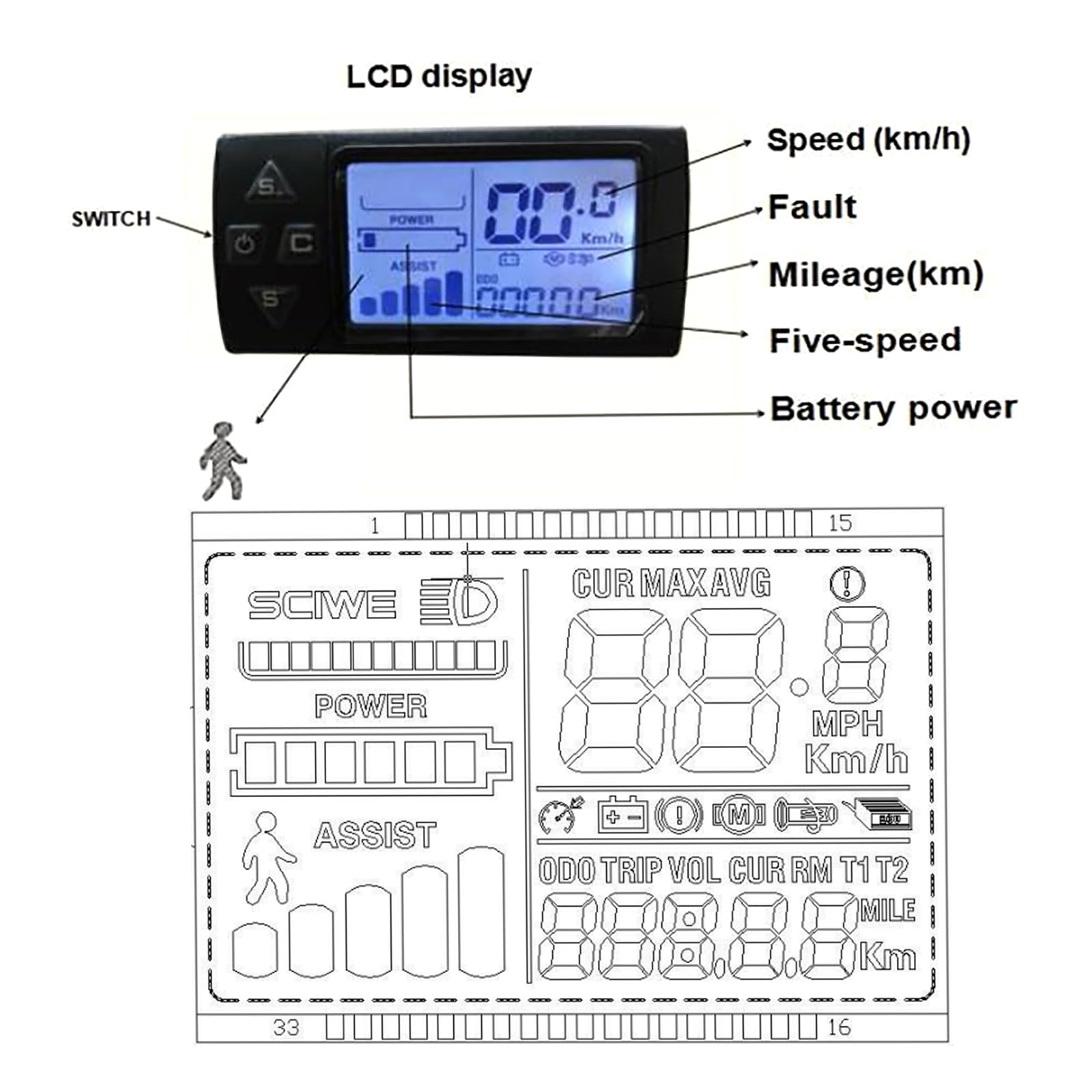 1 × LCD