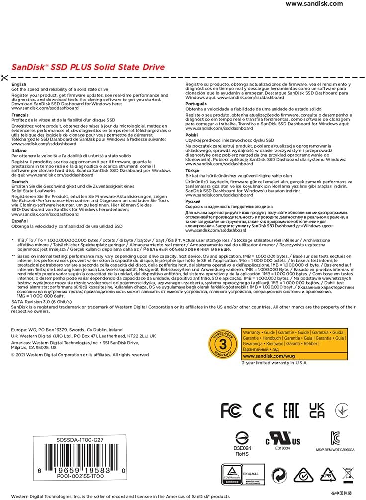 - Lieferumfang: SanDisk SSD Plus interne SSD Festplatte 1 TB (schnelleres Hoch-, Herunterfahren und Laden, Lesegeschwindigkeit 535 MB/s, Schreibgeschwindigkeit 350 MB/s, stoßfest); 3 Jahre Garantie