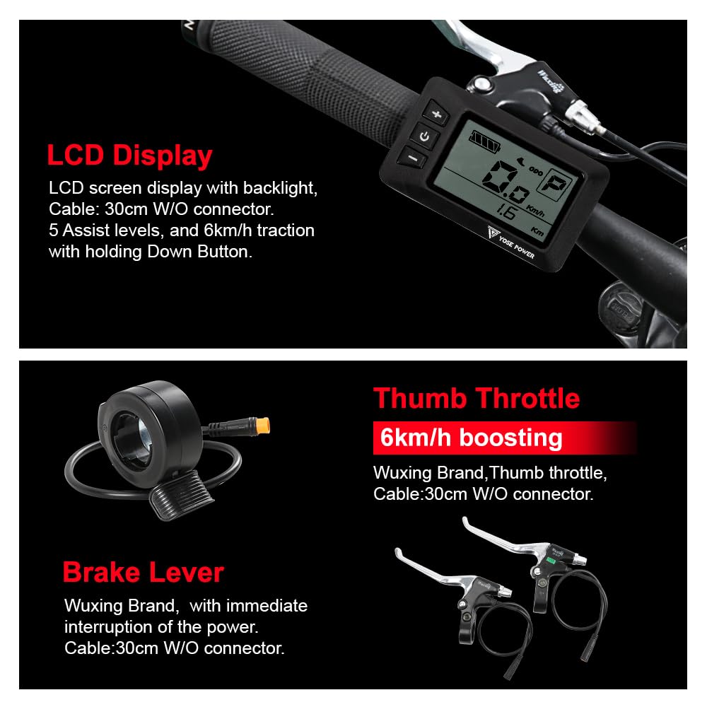 • 【Paket enthalten】-Komplettes Elektrofahrrad-Kit enthält fast alles, was benötigt wird, um Ihr Standard-Fahrrad in ein E-Bike umzuwandeln, einschließlich Motor, LCD-Display, PAS, Rad, Bremse, Gashebel, usw. !!!Hinweis: Reifen nicht enthalten.