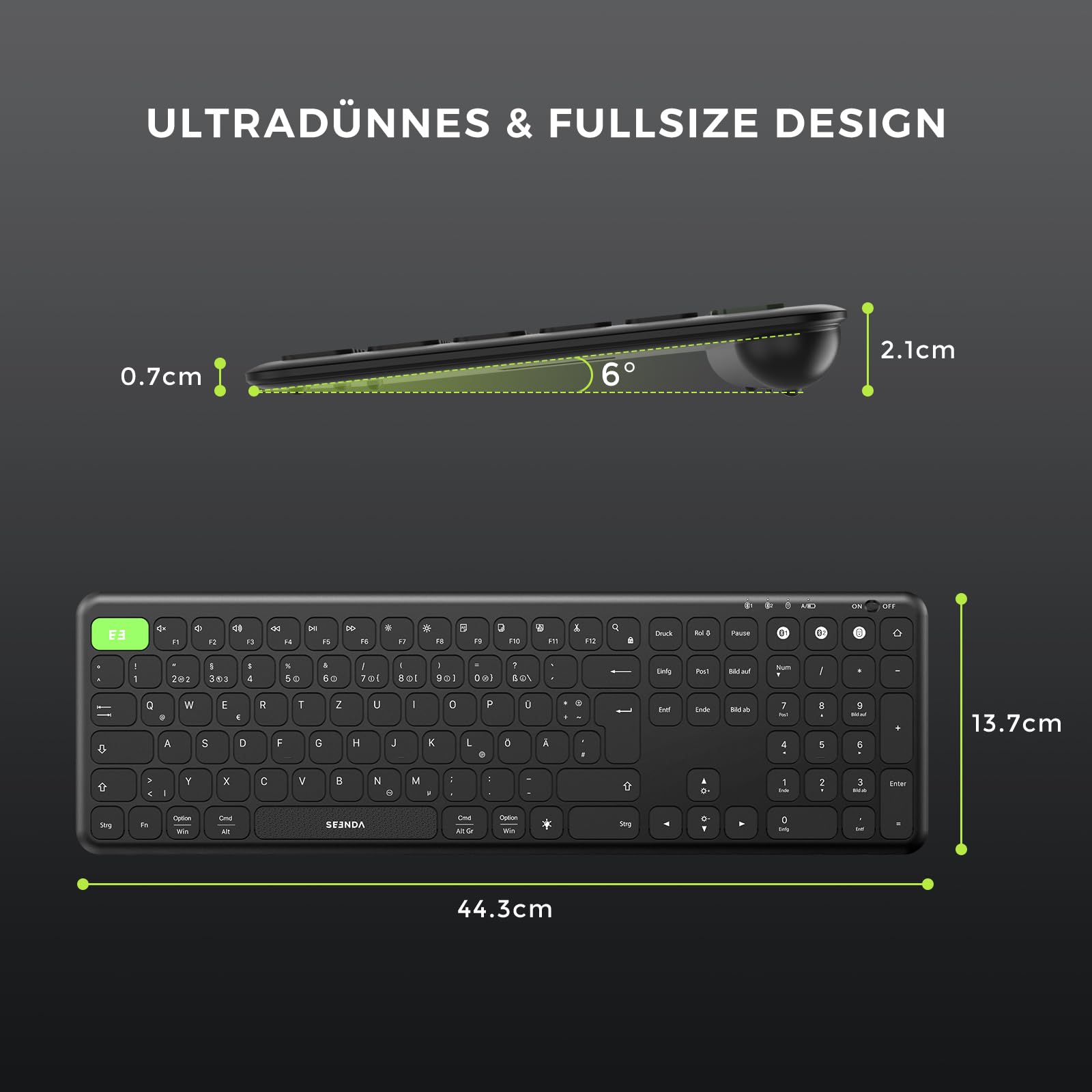 seenda Tastatur kabellos beleuchtet, USB & Bluetooth Tastatur mit 7 Farben Hintergrundbeleuchtung, Wiederaufladbare Leise Funktastatur für PC, Laptop, MacBook,Tablet, QWERTZ Layout(Schwarz)