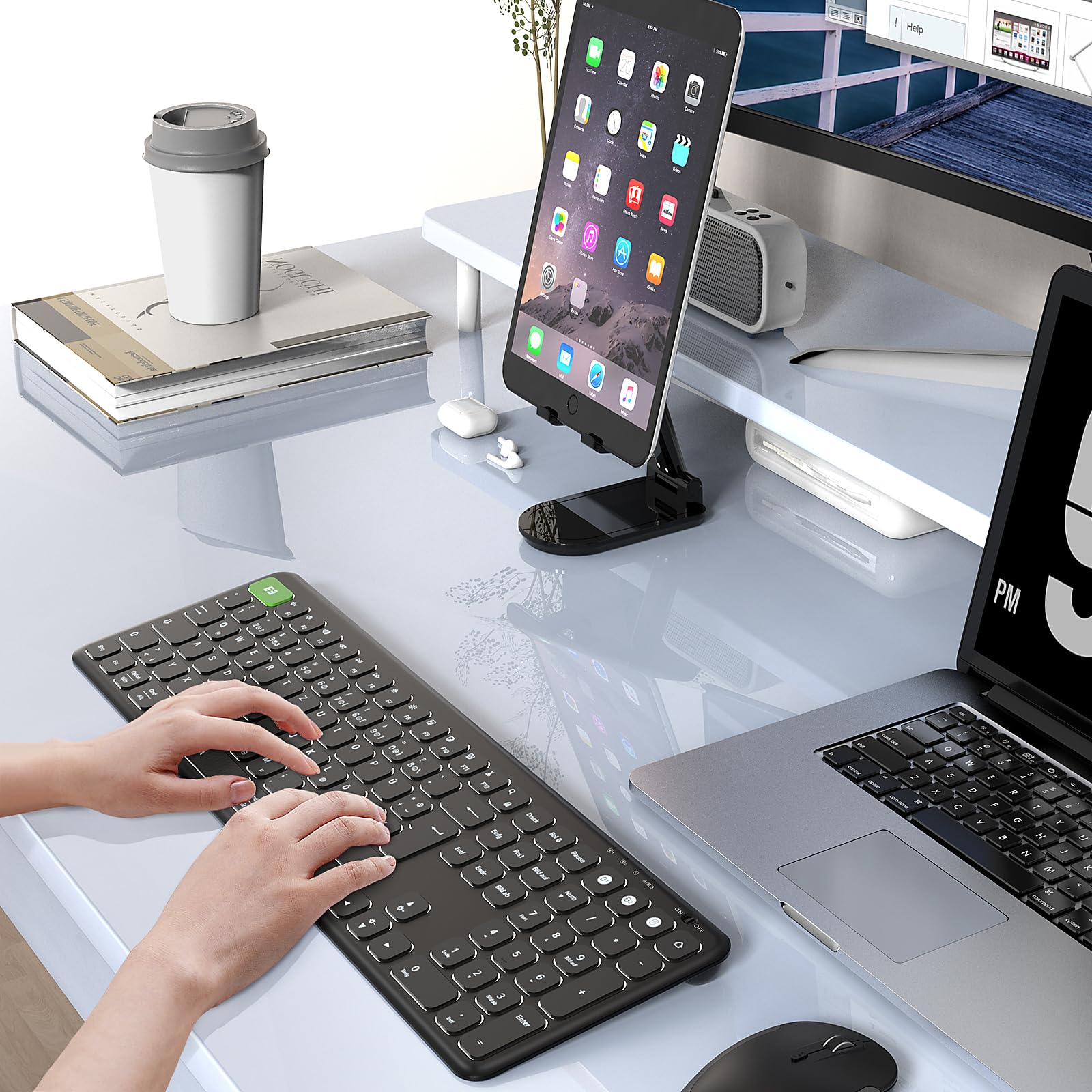• LEISE UND REAKTIONSSCHNELLE FULLSIZE TASTATUR - Die Wiederaufladbare Tastatur ist mit einem flachen Scherentaste-Design ausgestattet, die Geräusche um mindestens 90% reduzieren kann und ein komfortables und sensibles Tipperlebnis bietet