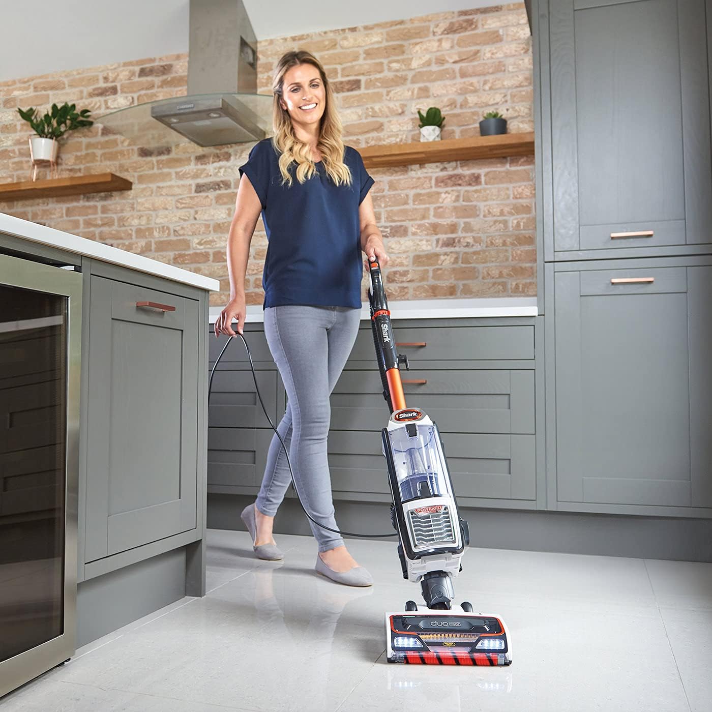 Einzelheiten: Dieser leistungsstarke kabelgebundene Staubsauger von Shark eignet sich hervorragend zum Reinigen von Teppichen und Hartböden, Treppen, Polstermöbeln und unter Möbeln. Das vielseitige Design ist einfach zu bedienen mit schwenkbarem Lenken und einem langen 8m Netzkabel. ANTI-HAIR-WRAP-TECHNOLOGIE: Müde davon, verhedderte Haare von der Bürstenrolle Ihres Staubsaugers zu entfernen? Die Anti-Hair-Wrap-Technologie trennt und entfernt Haare aktiv während des Reinigungsvorgangs und hilft dabei, die Bürstenrolle frei von Verwicklungen zu halten. DUOCLEAN: Der charakteristische Bodenkopf von Shark gleitet von Teppichen zu Hartböden und arbeitet mit zwei Bürstenrollen zusammen. Die Bürstenrolle mit Borsten reinigt tief in Teppichen, während eine weiche vordere Bürstenrolle große und kleine Schmutzpartikel aufnimmt und hartnäckigen Staub von Hartböden entfernt, ohne den Schmutz zu verteilen. VIELSEITIG: Werden Sie mobil mit Powered Lift-Away. Heben Sie einfach das Hauptgerät vom Stiel ab, um problemlos unter Möbeln zu reinigen. Mit dem Stiel erreichen Sie mühelos hohe Stellen und reinigen Treppen, Polstermöbel und schwer zugängliche Bereiche im Handstaubsauger-Modus mit dem mitgelieferten Fugendüsen- und Polsterreinigungsaufsatz. LED-Scheinwerfer im Bodenkopf beleuchten versteckten Staub unter Möbeln. ANTI-ALLERGEN COMPLETE SEAL: Erfasst und fängt 99,9%* des Staubs und der Allergene im Staubsauger ein. (*Basierend auf dem IEC-Standard 62885-2 Cl. 5.11 bei 0,3 bis 10 Mikron). 5-jährige Garantie bei Registrierung bei Shark.
