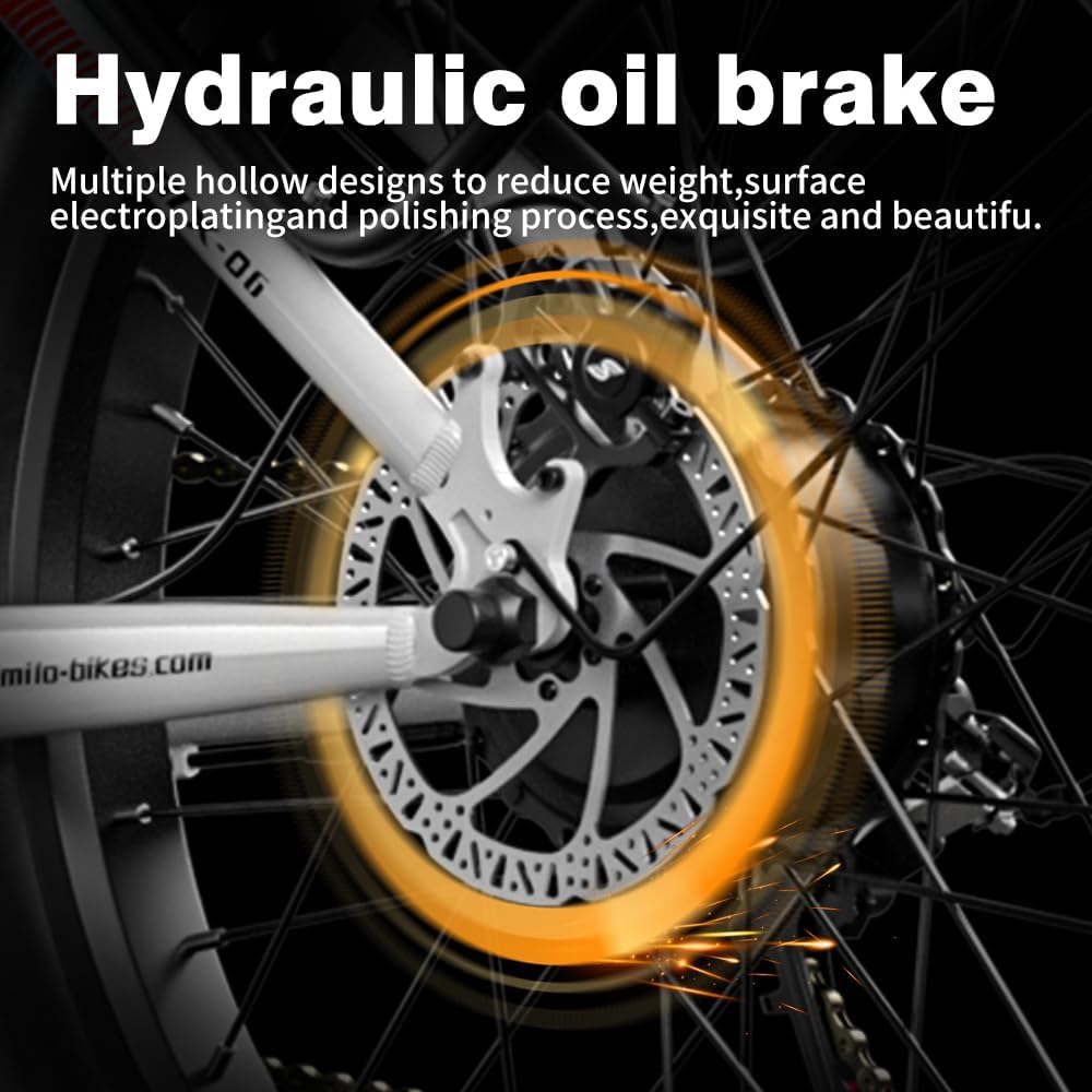 Ausgestattet mit Stoßdämpfern sorgen hochwertige abnehmbare Hydraulikölbremsen für ausreichende und zuverlässige Bremskraft an steilen Hängen, Schlaglöchern oder anderen extremen Bedingungen und reduzieren so unnötige Stöße während der Fahrt erheblich. Ermöglicht es Ihnen, lange Zeit zu fahren, ohne müde zu werden. Genießen Sie ein wirklich unschlagbares Fahrerlebnis.