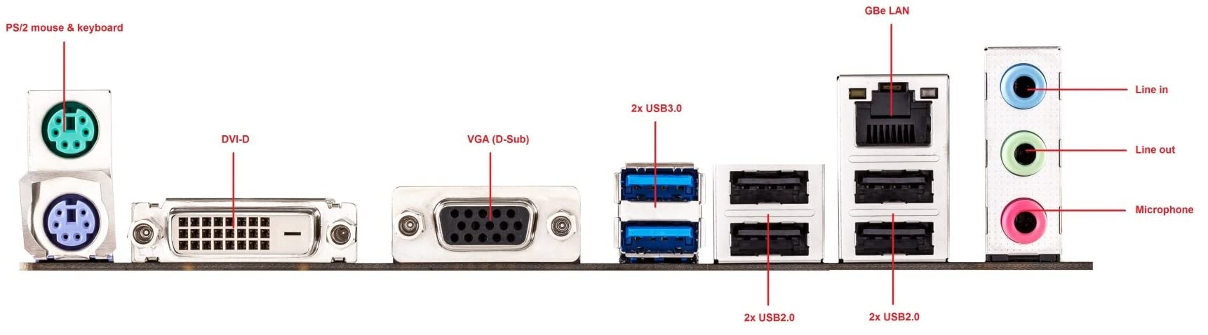 Mainboard: Intel Mainboard (1x PCI 16x, 2x DDR3, externe Anschlüsse siehe Bild)
