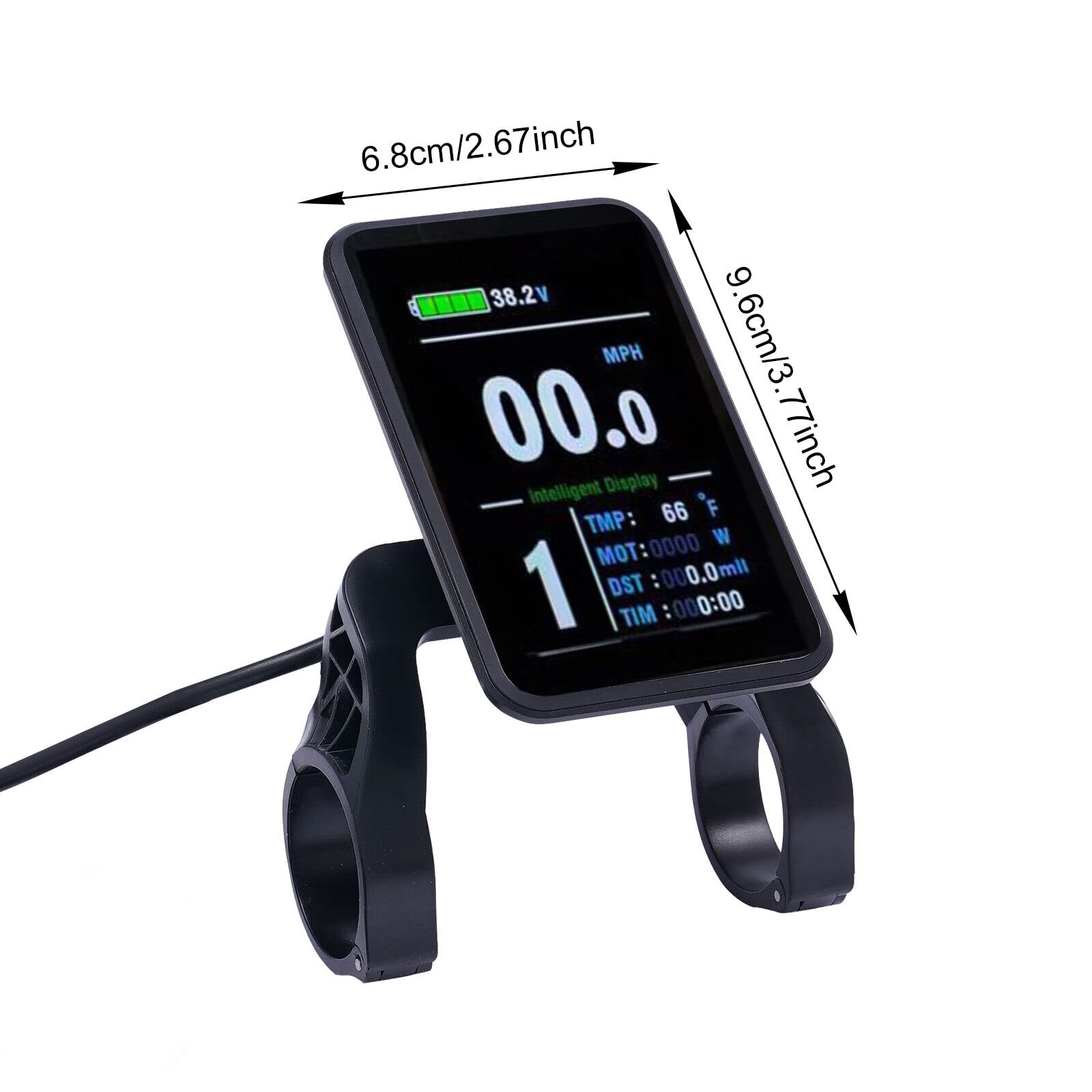 - LCD-Anzeige: Das LCD-Messgerät mit einem Farbbildschirm kann die Echtzeitgeschwindigkeit, die maximale Geschwindigkeit, die durchschnittliche Geschwindigkeit, die Gesamtkilometerleistung, einzelne Kilometer, die Batterieleistung, die Unterstützung des Gangs/der Geschwindigkeitsstufe, die Geschwindigkeitsregelung und den Fehlercode anzeigen, so dass Sie den Nutzungsstatus des Produkts erfassen können.