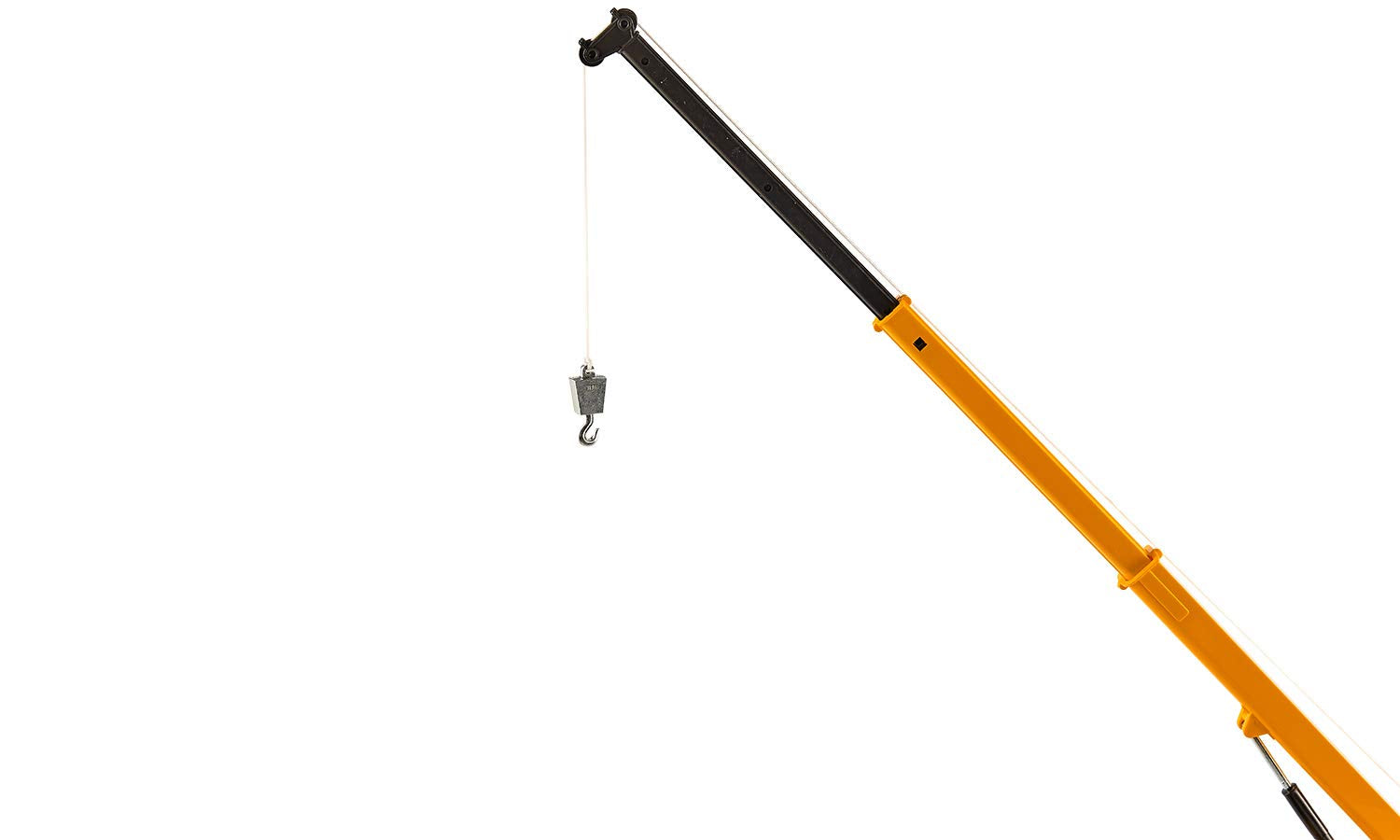 • Umfangreiche Funktionen: Doppelt teleskopierbarer Ausleger, ausfahrbare Metallstützen für sicheren Stand, Drehbarer Kran inkl. Kabine, Manuell steuerbare Seilwinde