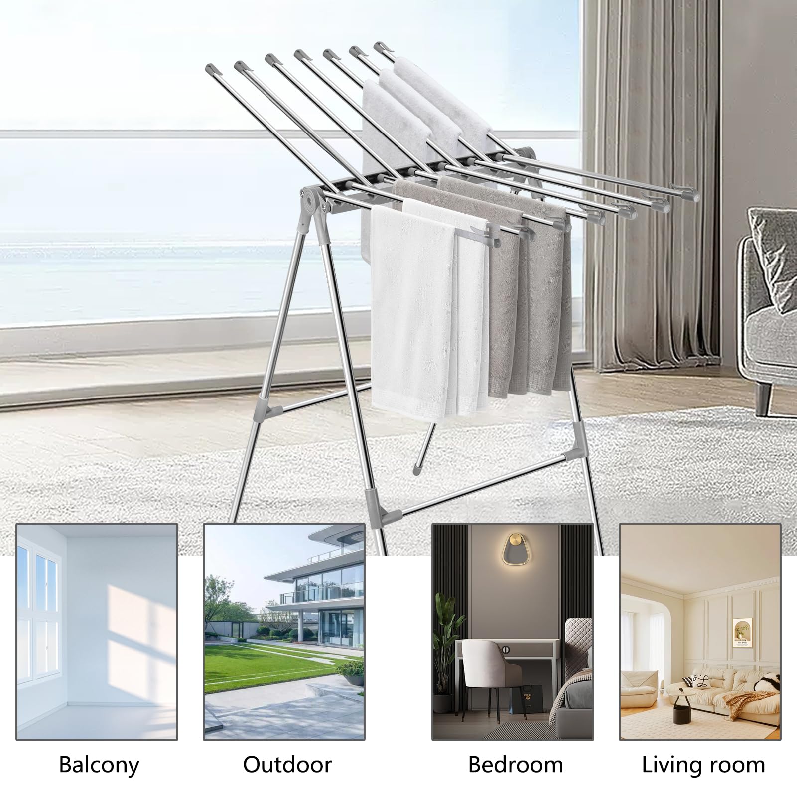 【Hohe Qualität】Der Wäscheständer ist rostbeständig und sehr robust, was Ihnen dank seiner Edelstahlrohre einen täglichen Gebrauch mit einer langen Lebensdauer ermöglicht. Selbst wenn das Produkt voll mit Kleidung ist, bleibt es sehr stabil und sicher in der Anwendung. Langlebig und rostbeständig für eine nachhaltige Investition. Die verwendeten Materialien sind wasser- und rostbeständig.