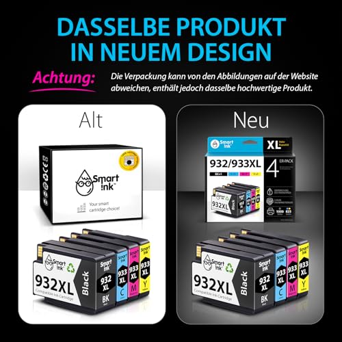 - Packungsinhalt: 1 x Schwarz 932 XL, 1 x Cyan 933 XL, 1 x Magenta 933 XL, 1 x Gelb 933 XL (4 Patronen insgesamt)