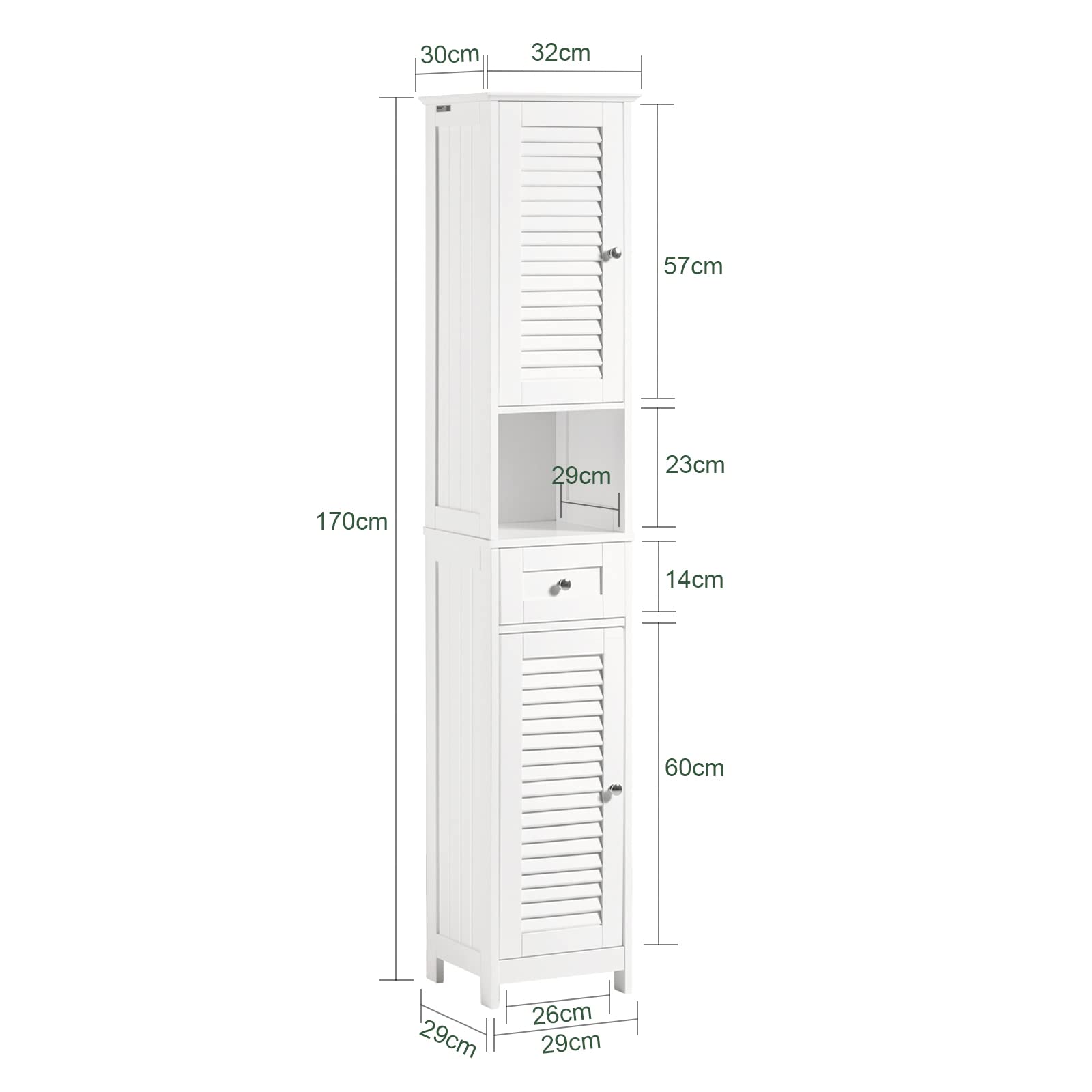 SoBuy Badezimmer-Hochschrank Badregal Badschrank Badmöbel mit 1 offenem Fach, 1 Schublade und Türen, weiß BHT ca. 32X170X30cm FRG236-W