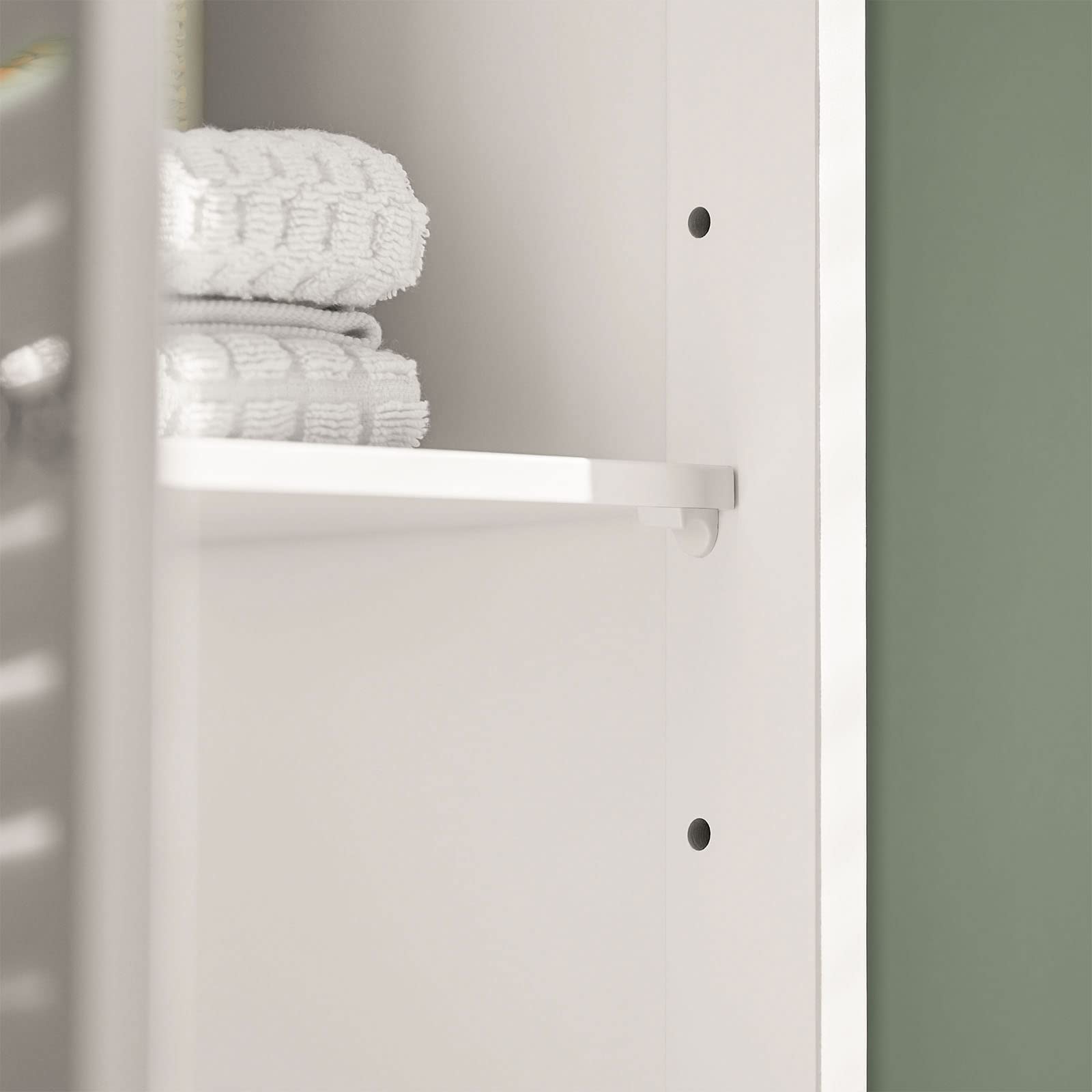 • Viel Stauraum für die täglichen Dinge im Bad: Hochschrank mit 2 Türen, einer Schublade und einem offenem Fach