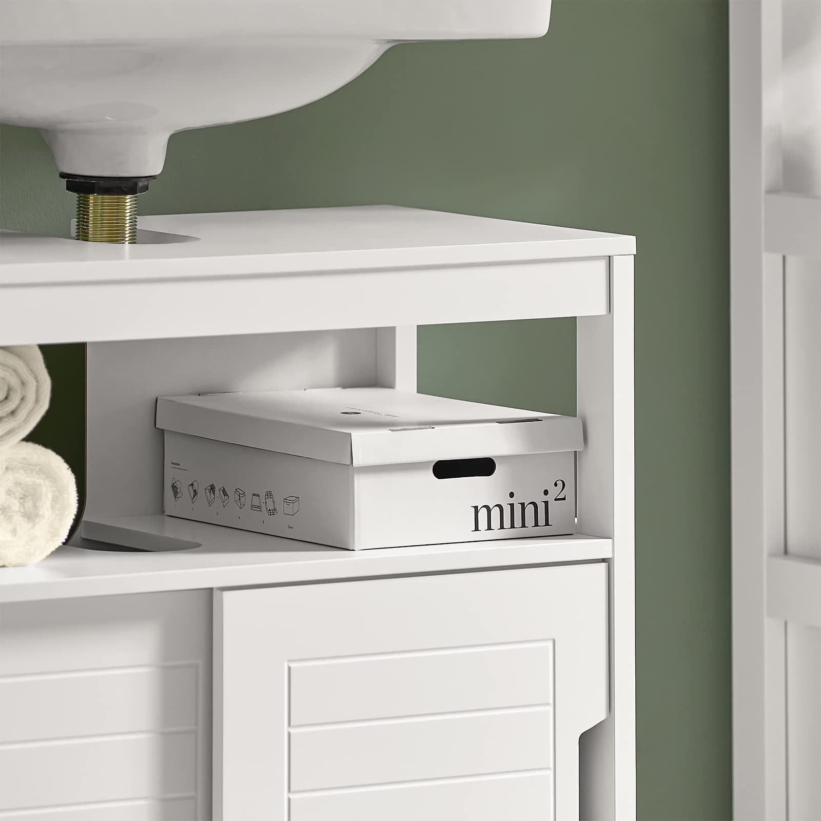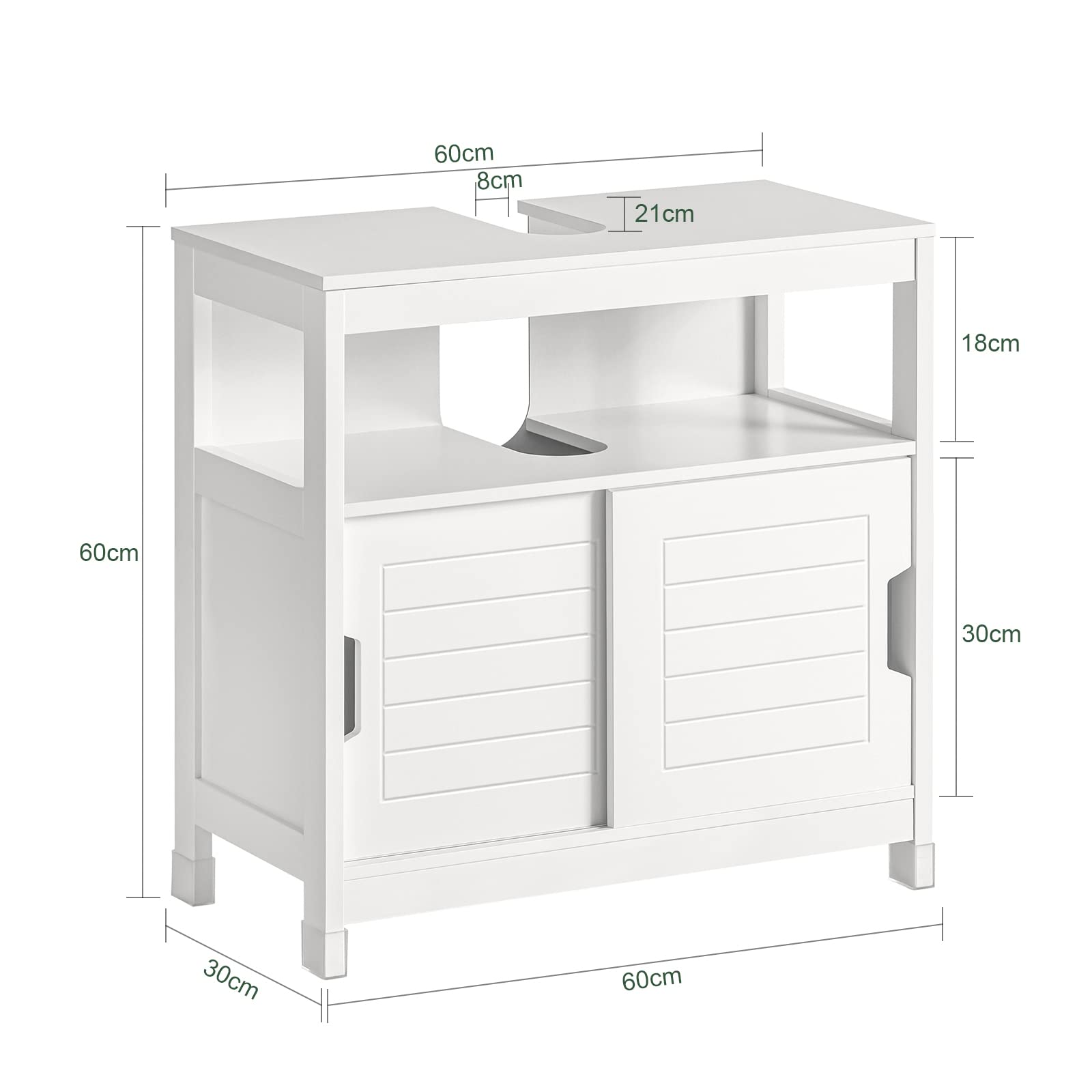 - 2 Schiebetüren und 1 offene Ablage bieten viel Stauraum, die ideale Lösung um in Ihrem Bad für Ordnung zu sorgen.