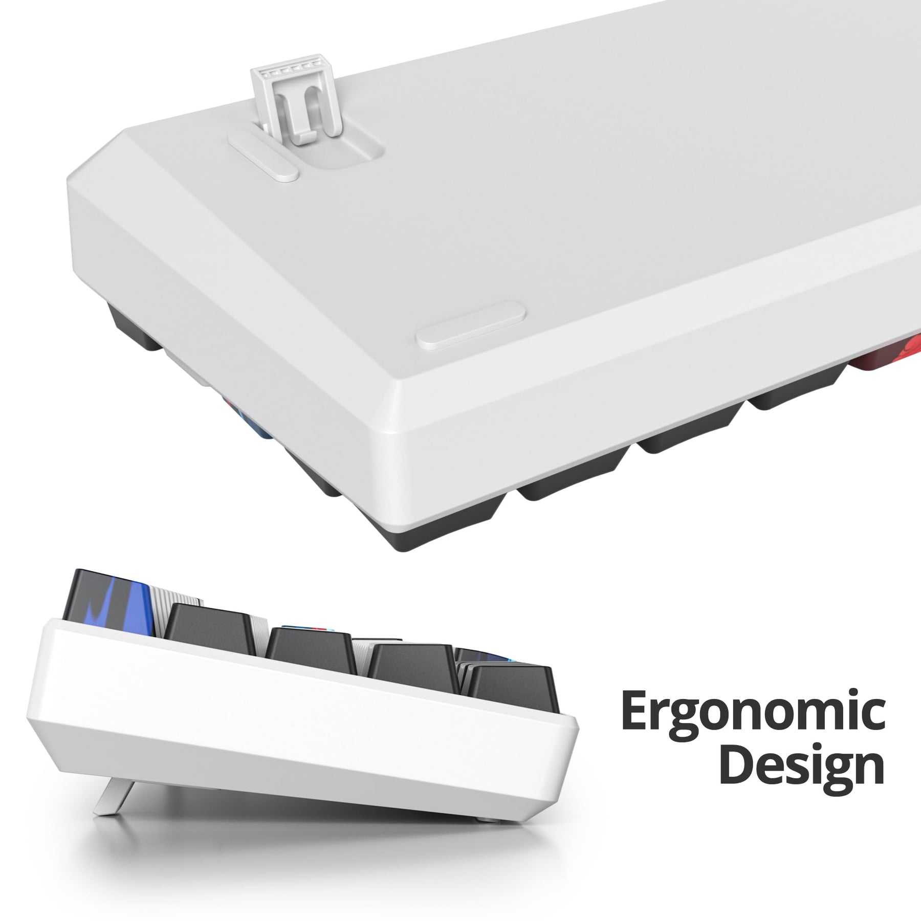 • ✿【Ergonomische 60% Gaming Tastatur】Unsere mechanische Tastatur mit dem wissenschaftlichen Treppen-Tastenkappen-Design bietet maximalen Komfort und hält Ihre Hand in einem möglichst natürlichen Zustand, um die Ermüdung der Hand nach längerem Gebrauch zu minimieren und Tippfehler zu minimieren. Es ist also für Gamer, Schreibkräfte, Programmierer, Texter, Büroangestellte und Redakteure konzipiert.