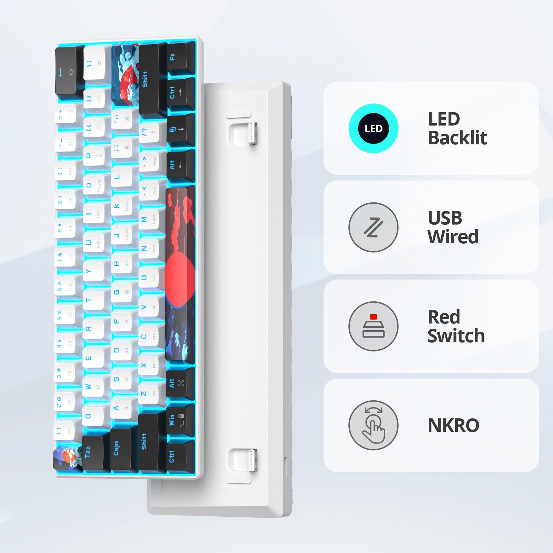 SOLIDEE mechanische Gaming Tastatur 60 Prozent,61 Tasten mit Lineare rote Schalter,kabelgebundene mechanische Tastatur mit LED-Hintergrundbeleuchtung,kompakte Tastatur,für PS5/PS4/Xbox(61 White)