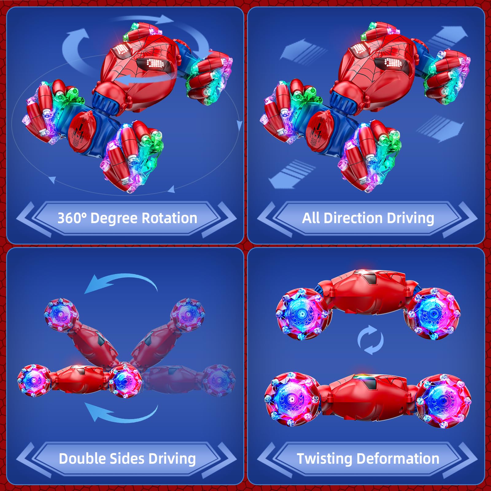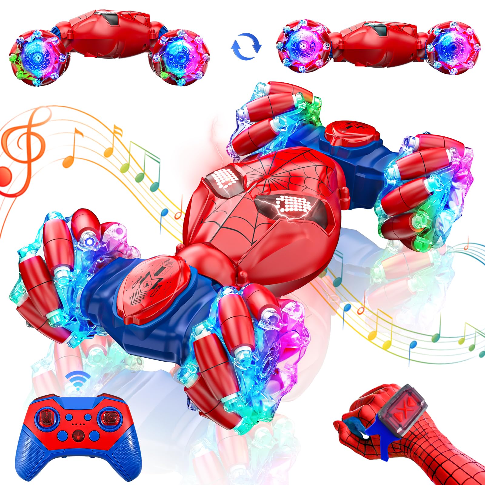 - 【Gestengesteuerte Stunt-Meisterschaft】: Erleben Sie die nächste Stufe des Spaßes mit dem Spider RC-Auto! Führen Sie unglaubliche 360°-Drehungen, Drifts und Flips mit intuitiven Handgesten aus. Ausgestattet mit leuchtenden LED-Lichtern und coolen Soundeffekten garantiert dieses Stunt-Car endlose Aufregung für Kinder