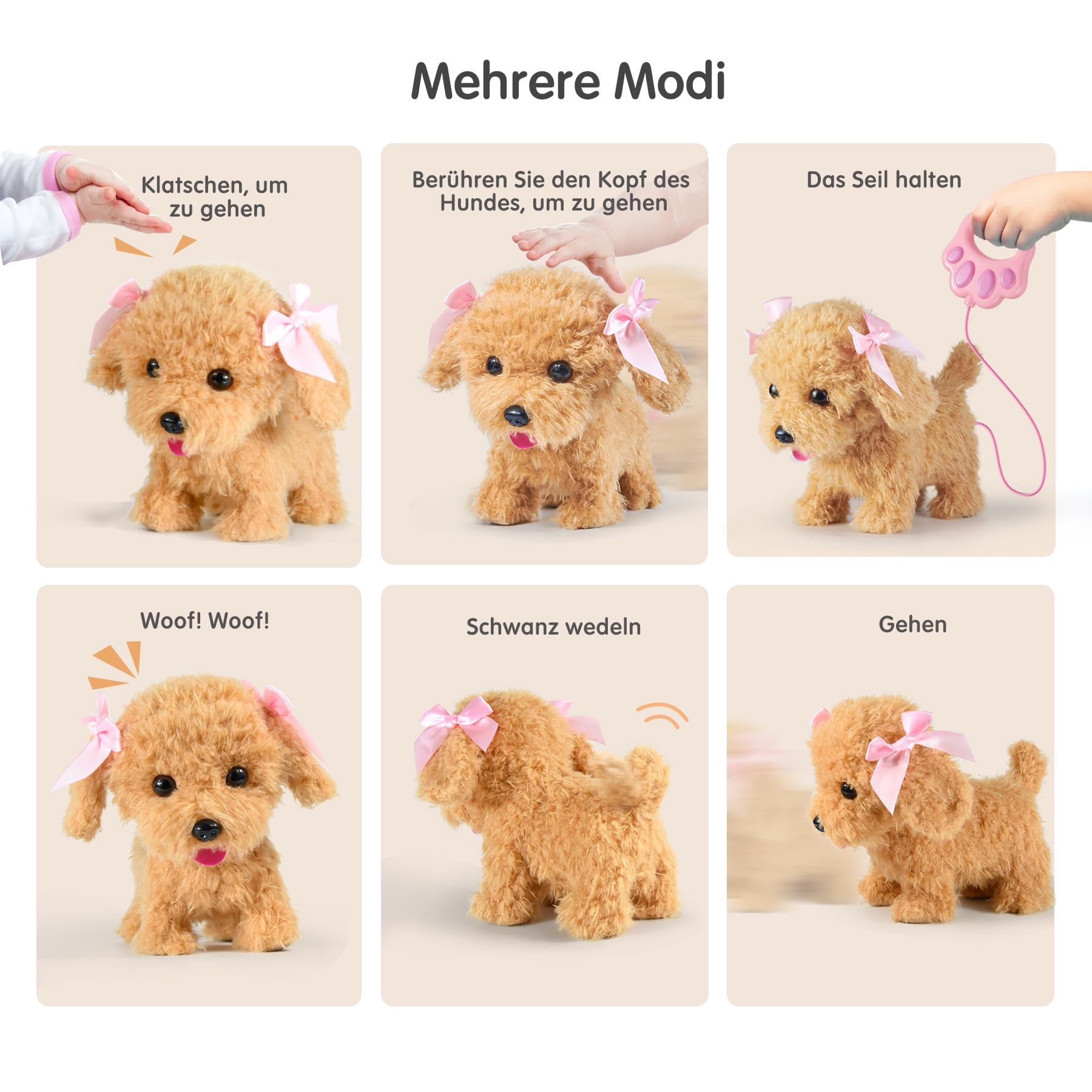 • SOUND UND BERÜHRUNG INTERAKTIV: Begleitspielzeughund Wenn Ihre Babys mit dem Hund sprechen oder leicht ihren Kopf oder Rücken berühren, kann sie auch bellen und mit dem Schwanz wedeln. Wir sind so sicher, dass Sie und Ihr Kind diesen Spielzeughund lieben werden, der läuft und bellt Freund / Partner, der an der Geburtstagsfeier des Kindes teilnimmt