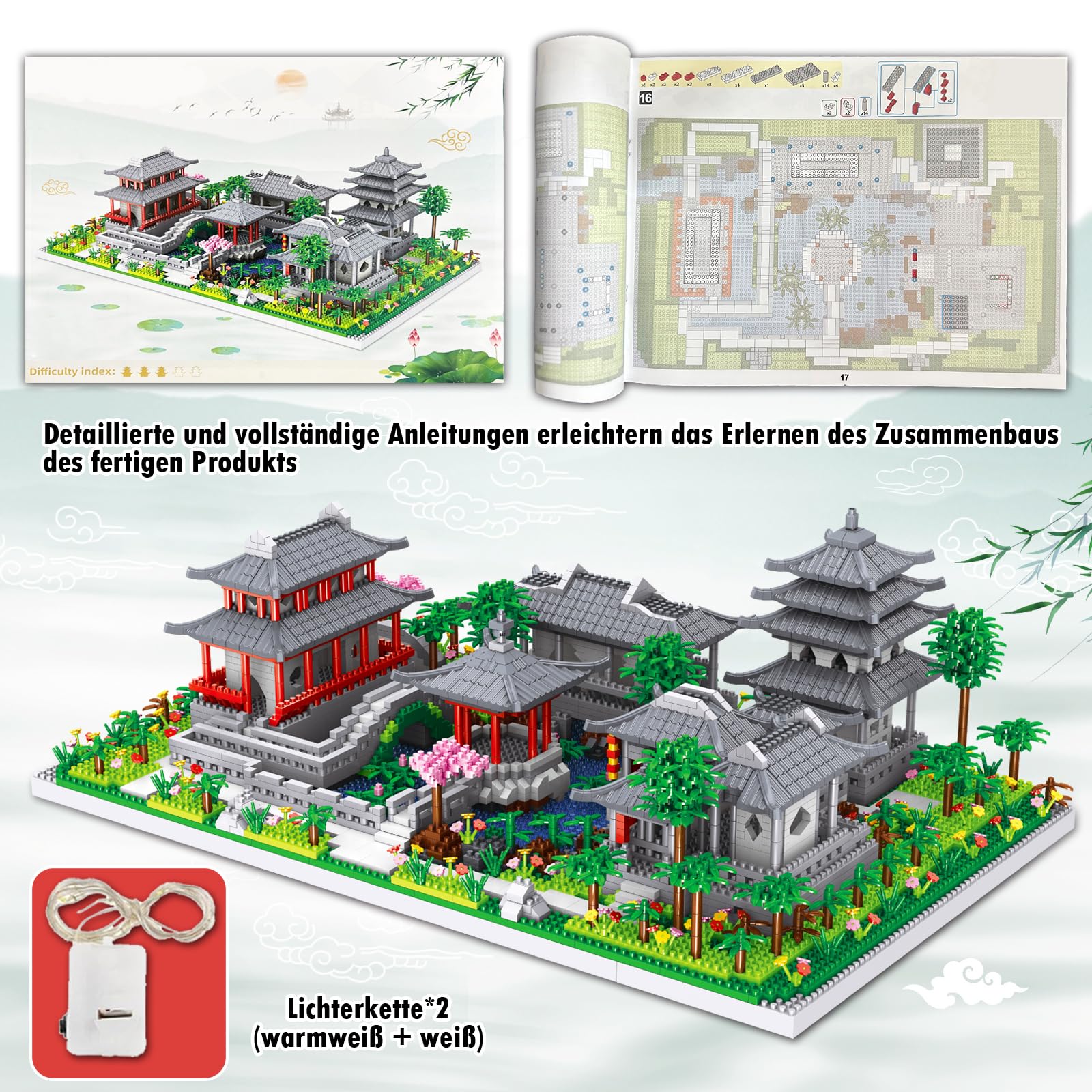 - Stundenlange lohnende Herausforderung: Dieses Mini Bausteine Bausatz Enthusiasten entwickelt, die ein fesselndes Projekt suchen, und bietet nach der Fertigstellung ein befriedigendes Erfolgserlebnis. Verwandeln Sie Tausende von Teilen in einen exquisiten klassischen chinesischen Garten, ein triumphales Herzstück, das Ihre Hingabe zur Schau stellt