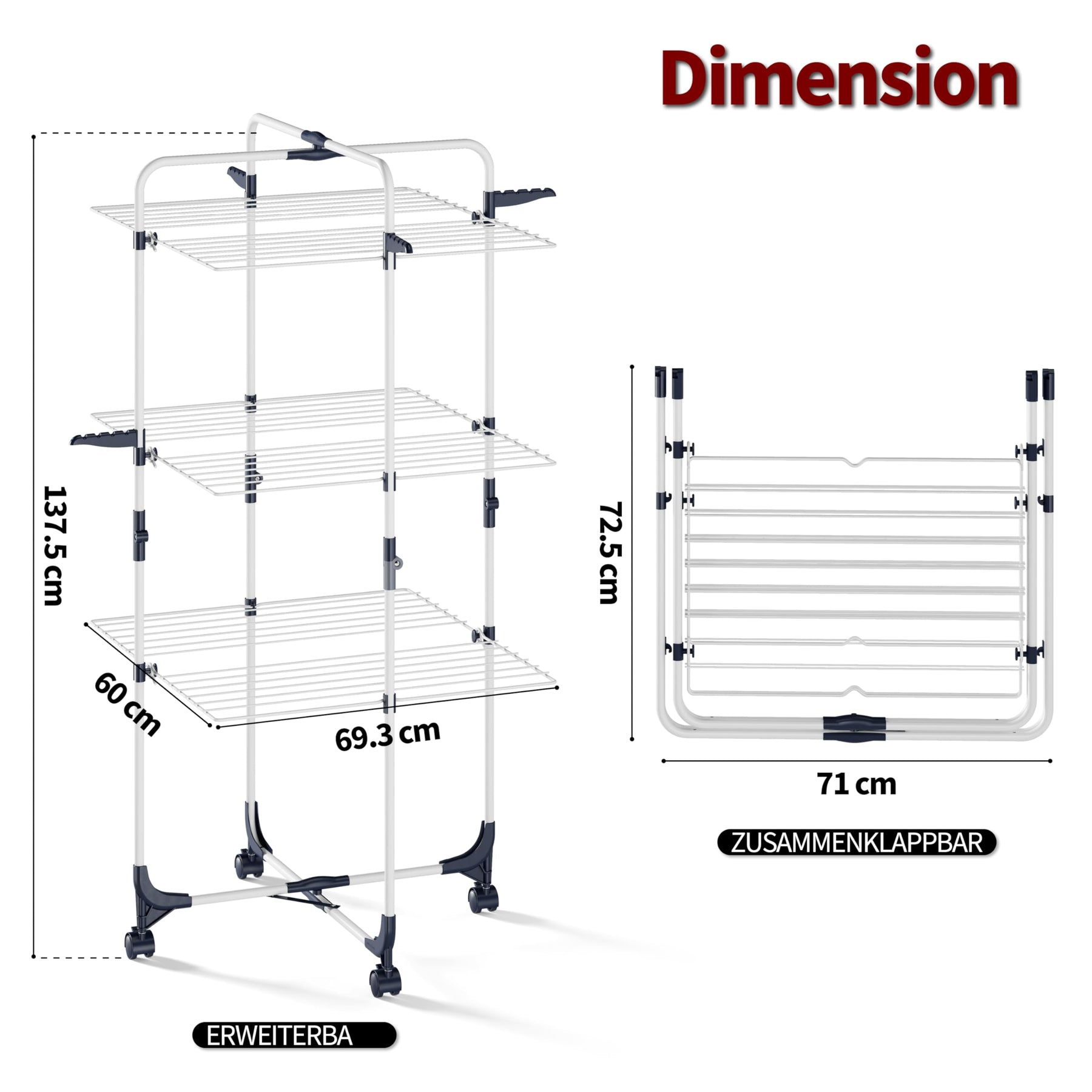 - Weitere erstaunliche Eigenschaften: Dieser faltbare Trockenständer für Kleidung kommt mit rutschfesten Gummis an der Unterseite, die den Boden nicht zerkratzen. Es gibt mehr als 25 Trocknungsraum, und jede Schicht kann demontieren geeignet für Ihre Bedürfnisse