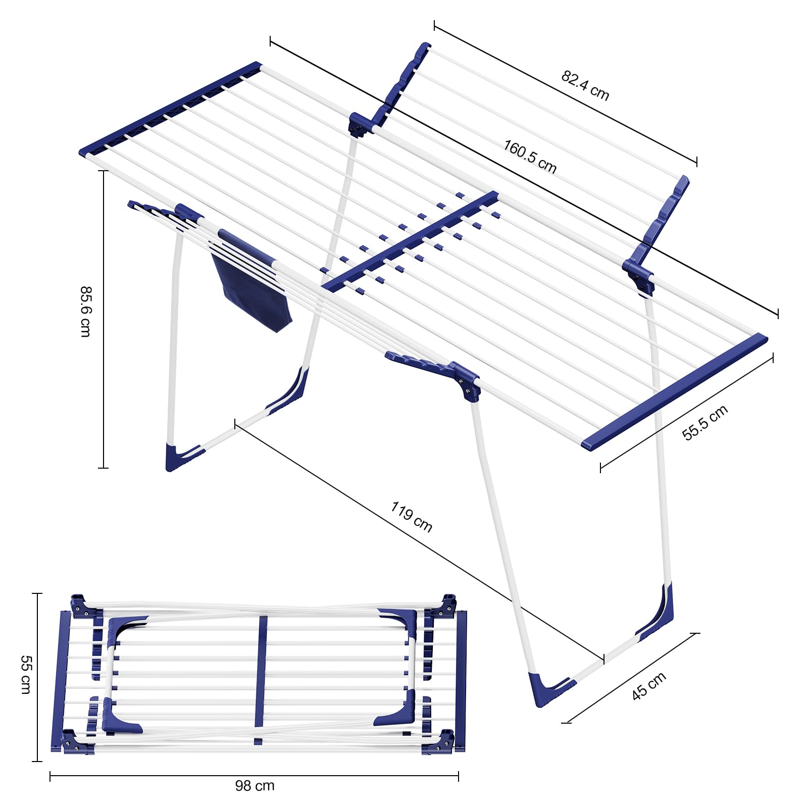 - Erweiterbares Design: Mit seinem erweiterbaren design lässt sich dieser flügelwäscheständer im aufgeklappten zustand problemlos von kompakten 97,2 cm auf großzügige 160,5 cm ausziehen. Verabschieden sie sich von beengten waschküchen und bieten sie optimalen platz zum aufhängen lhrer kleidungsstücke