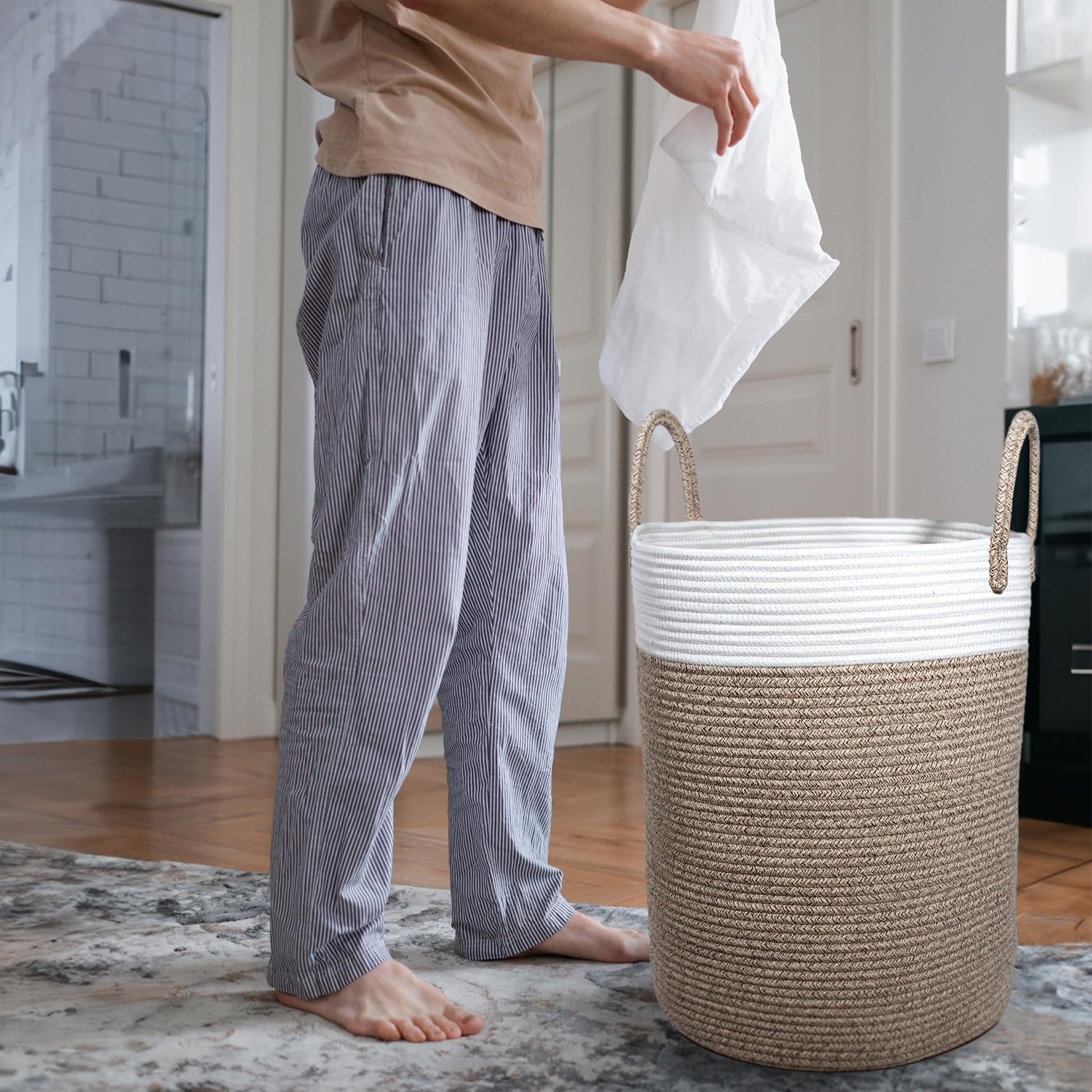 - [ Sichere Aufbewahrungskörbe ] Die Körbe sind aus geflochtenem Baumwollseil hergestellt und zerkratzen Ihre Haut nicht, so dass Sie sie bedenkenlos verwenden können. Dank des Herstellungsverfahrens ist das Produkt dadurch widerstandsfähiger, ohne den Boden zu beschädigen.