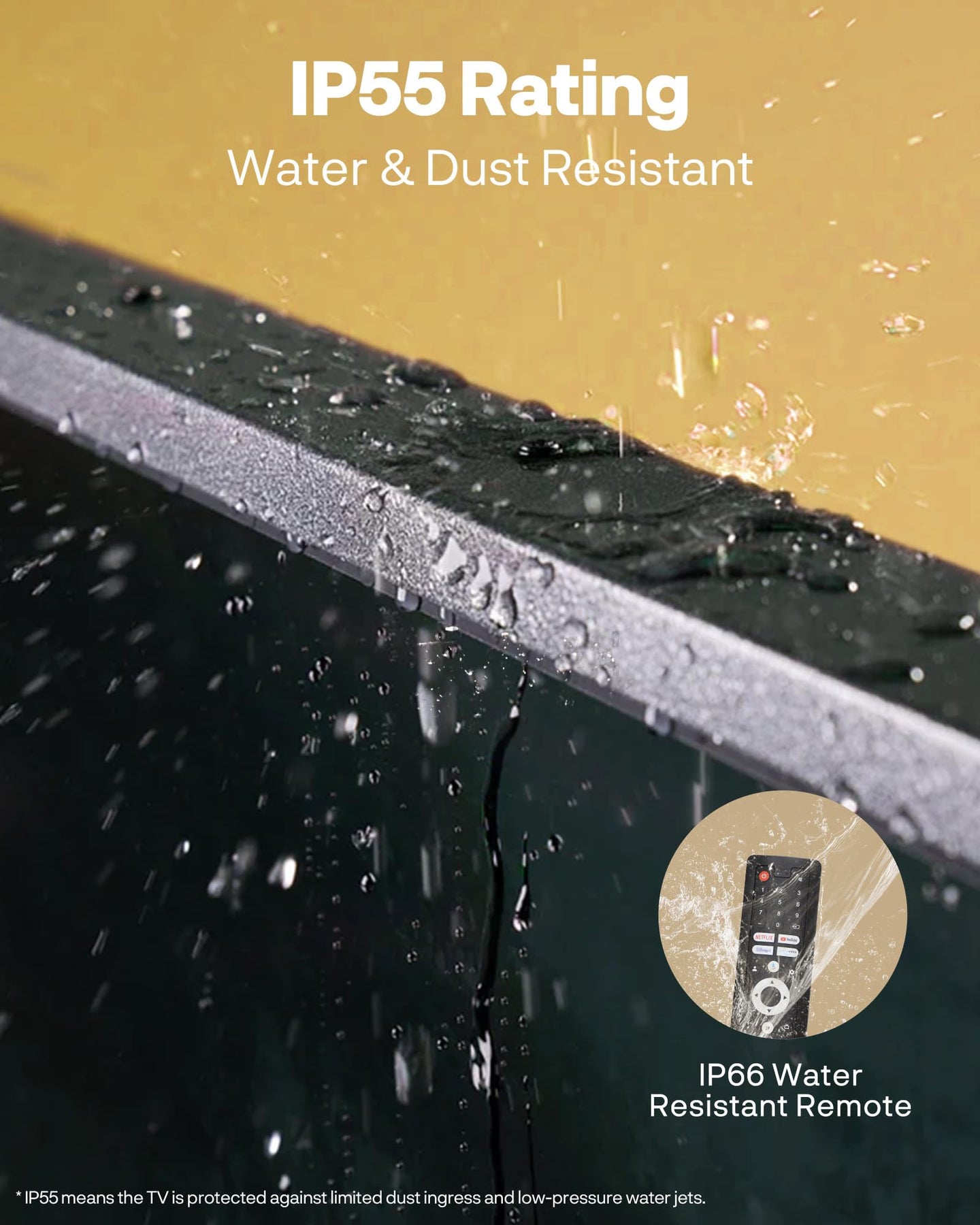 - Unterstützt Google Assistant: Dieser smart outdoor TV, kompatibel mit Google TV OS, bietet große Bequemlichkeit. Er verfügt über eine Vielzahl von Apps, um alle Unterhaltungswünsche zu befriedigen. Sie können die Bildschirmspiegelung nutzen, um Inhalte von Ihren Geräten einfach streamen zu können, nutzen Sie die Sprachassistent - Unterstützung, die Watchlist - Funktionen und den nahtlosen Kontenwechsel