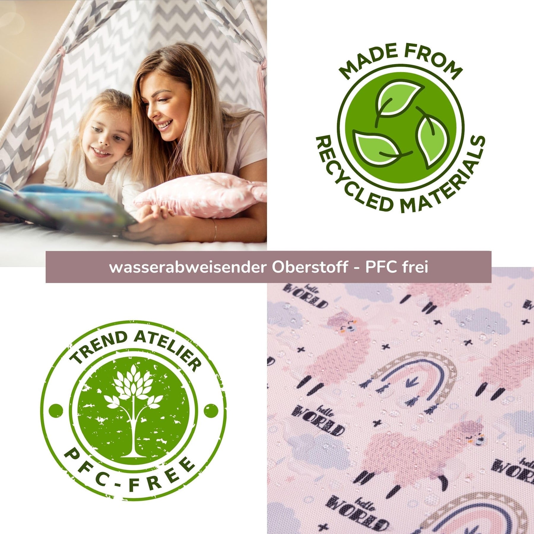 - PFC-freie, schmutz- und wasserabweisende Imprägnierung: Dank unserer umweltfreundlichen Imprägnierung perlt Wasser einfach von der Außenseite der Tasche ab. So bleibt das Material trocken und die Natur sauber.