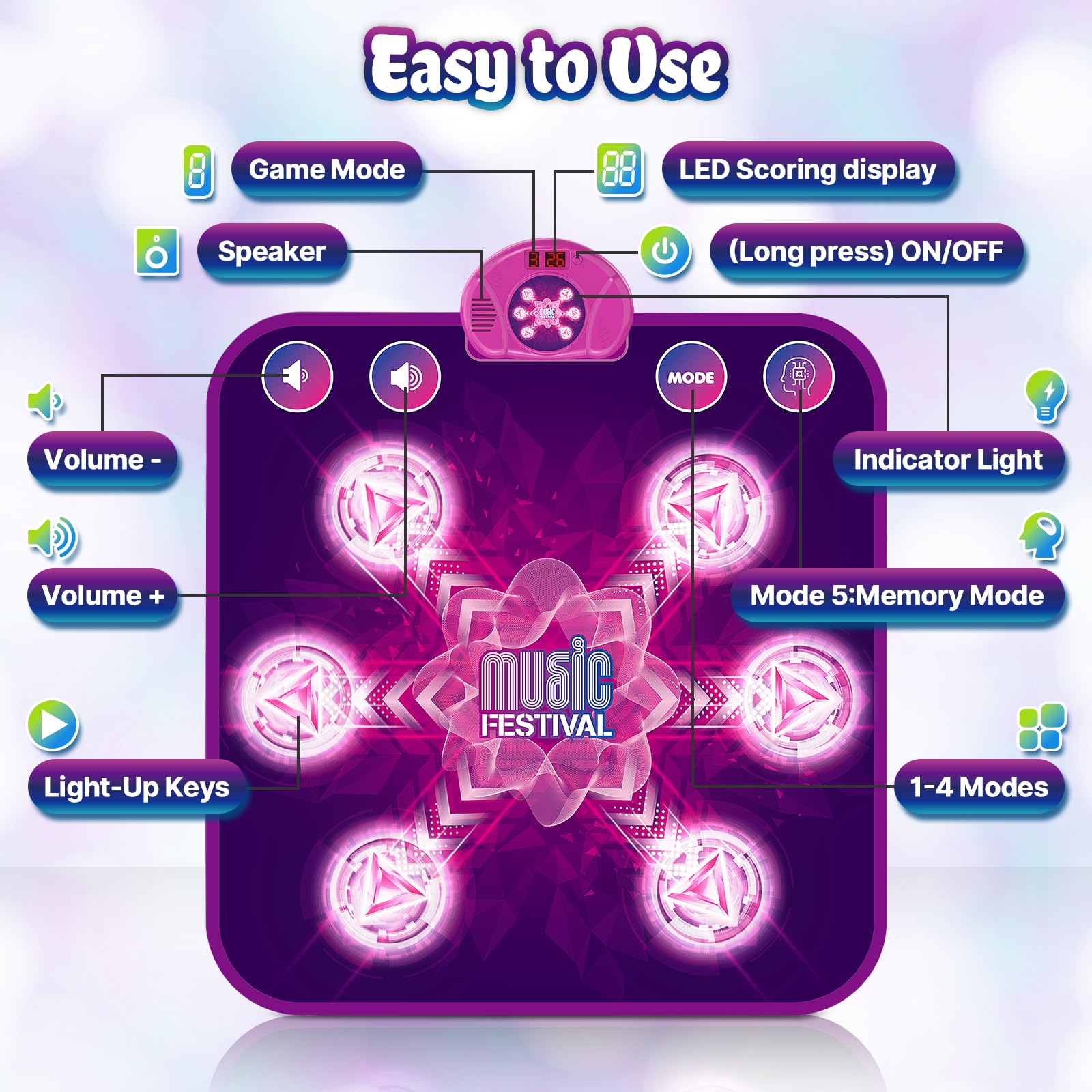 - 🎵【Das beste Geschenk für Kinder】Die musikalische Spielmatte ist leicht zu falten und zu tragen und kann überall zum Tanzen mitgenommen werden. Tolle Unterhaltung drinnen und draußen! Geeignet für Kindertag, Weihnachten, Neujahr und Geburtstag Geschenke, perfektes Geschenk für Mädchen ab 4 5 6 7 8 9 10 11 12 Jahren.